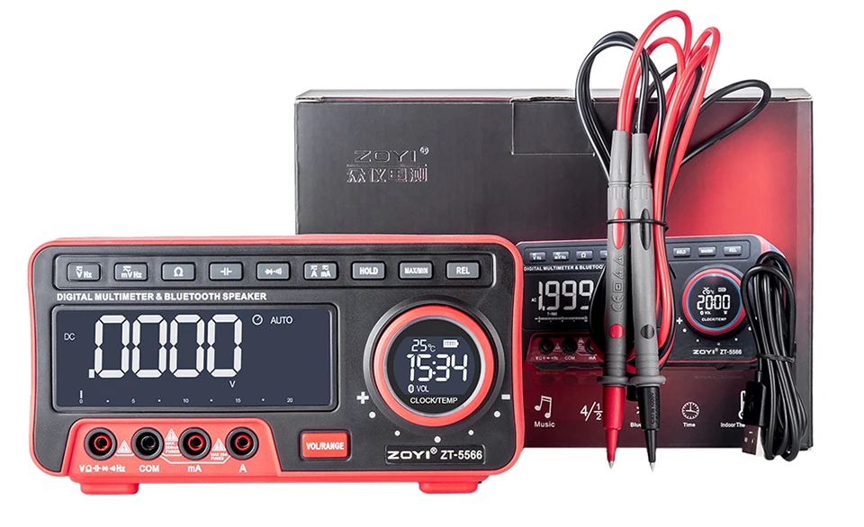 Мультиметр ZOYI Настольный ZT-5566 дюйма с двумя экранами EBTN 19999 отсчетов + BT динамик тестер напряжения тока Гц с часами