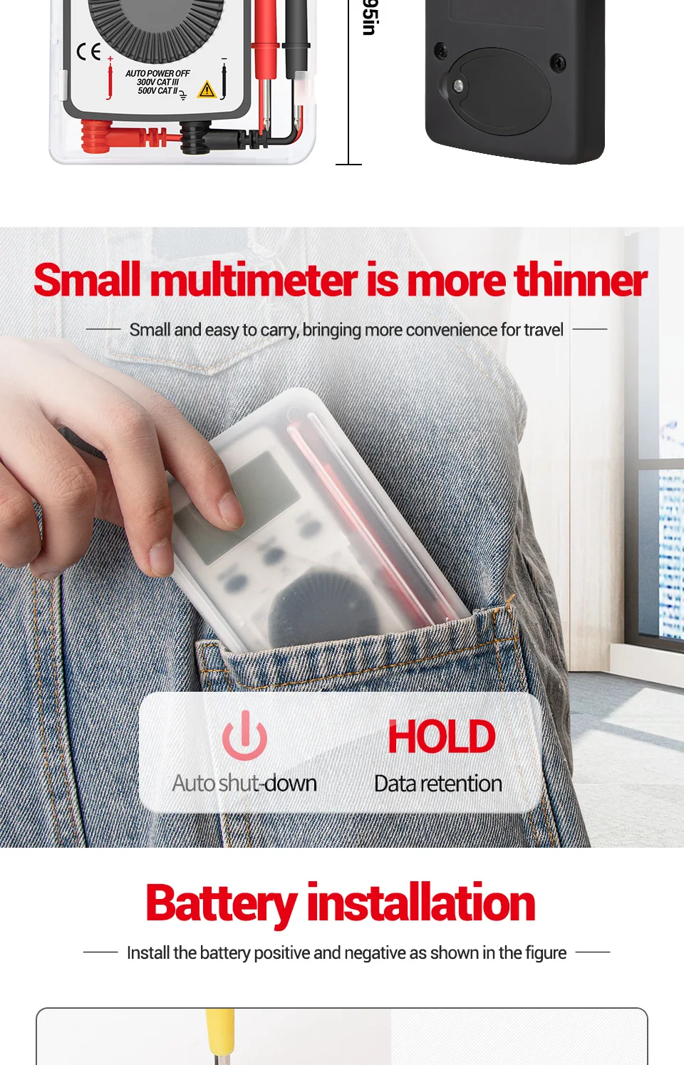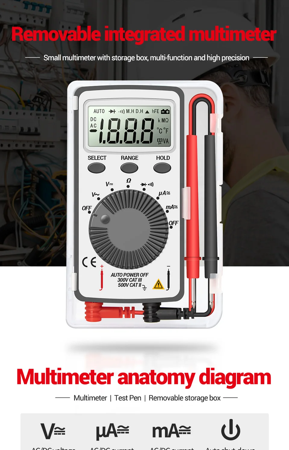 Цифровой мультиметр-1 шт.(Батарея в комплект не входит) 2 х тестовых проводаПримечание: