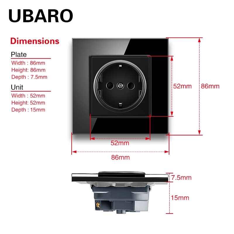 1. Настенная розетка используется для питания мобильных телефонов, цифровых продуктов и других электрических эквивалентов. 2. Этот продукт должен быть установлен профессиональным электриком. 3. Он широко используется во многих местах, таких как: отель, ресторан, дом, общественные места. 4. Материал: панель с гнездом из закаленного роскошного кристального стекла, водонепроницаемый, ПК огнеупорный чехол. 5. Цвет: белый/золотой/черный/серый 6 、 Вход Напряжение: AC 110-250V 50/60Hz Максимальный ток: 16A. 7. Упаковка в коробке: 1 шт. + 6 винтов.