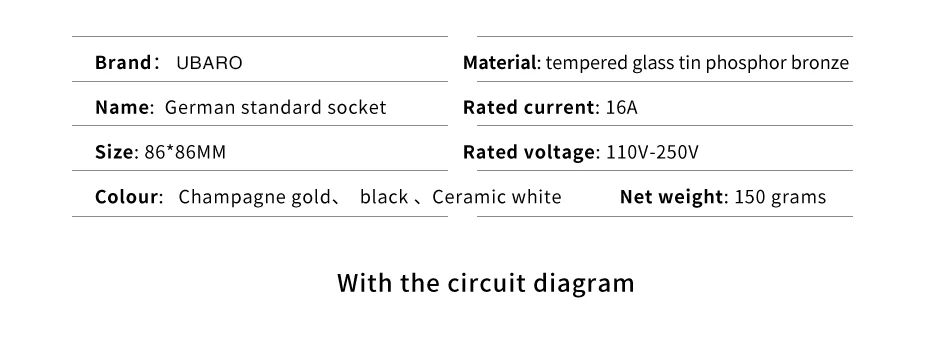 1. Настенная розетка используется для питания мобильных телефонов, цифровых продуктов и других электрических эквивалентов. 2. Этот продукт должен быть установлен профессиональным электриком. 3. Он широко используется во многих местах, таких как: отель, ресторан, дом, общественные места. 4. Материал: панель с гнездом из закаленного роскошного кристального стекла, водонепроницаемый, ПК огнеупорный чехол. 5. Цвет: белый/золотой/черный/серый 6 、 Вход Напряжение: AC 110-250V 50/60Hz Максимальный ток: 16A. 7. Упаковка в коробке: 1 шт. + 2 винта.