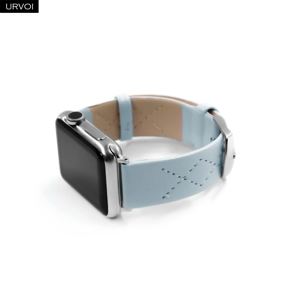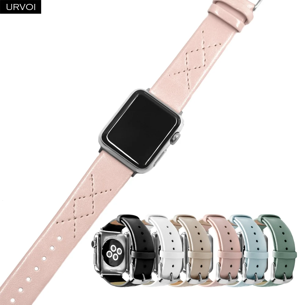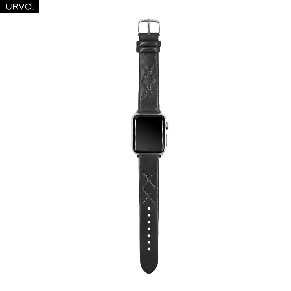 Кожаный ремешок URVOI для Apple Watch series 5, 4, 3, 2, 1 ремешок для iWatch 40, 44 мм с бриллиантами, классический ремень с пряжкой на запястье