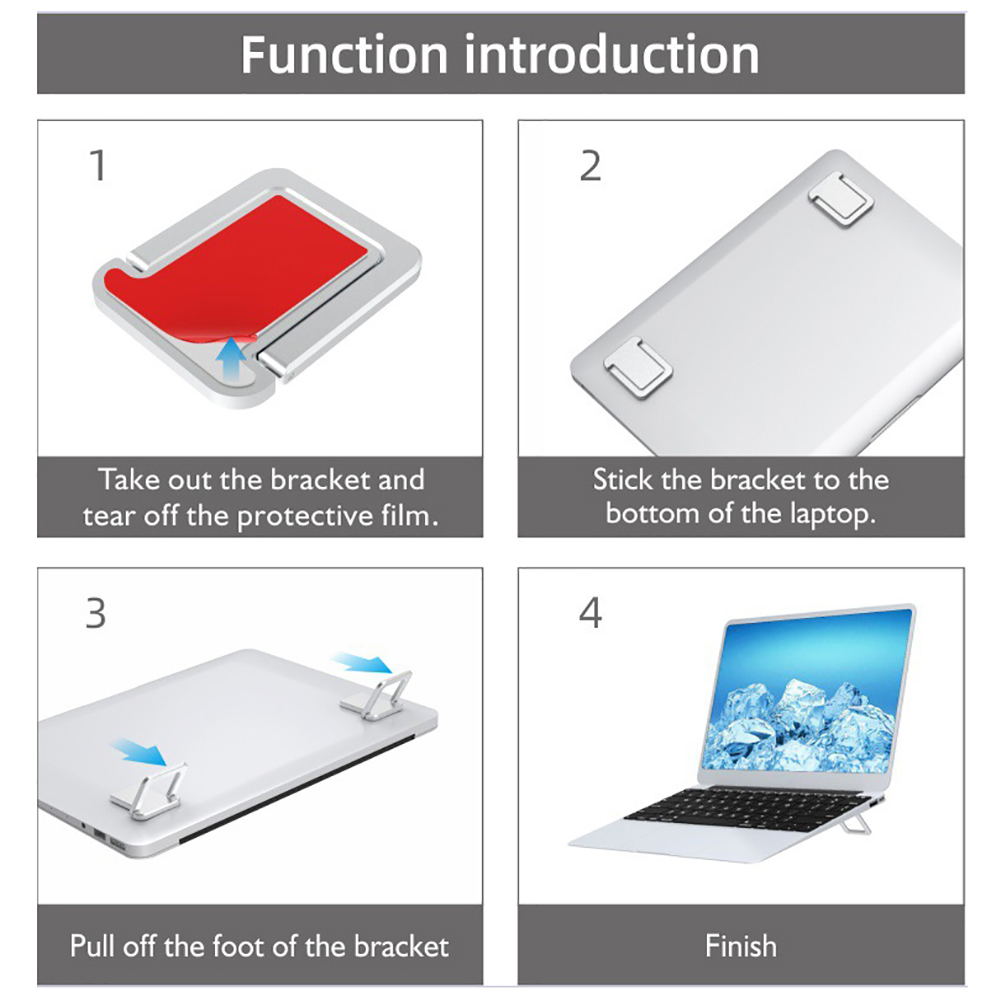 -Продукт изготовлен из алюминиевого сплава, который имеет высокую твердость и используется для длительного времени. -Складная конструкция, маленький и светильник, может улучшить тепловыделение ноутбука. -Может быть очищен и повторно использован, высокое использование. -Улучшите сидение человека, получите больше комфорта на работе.