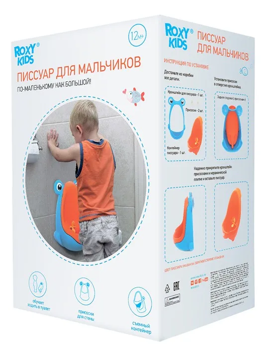 Писсуар для мальчиков ROXY-KIDS Лягушка с прицелом выполняет две важные функции. Во-первых, он помогает приучить мальчиков с самого раннего возраста к хождению во взрослый туалет, а во-вторых, удовлетворяет потребность малышей во всем подражать родителям. Особенности: Писсуар можно закрепить в любое место на стене на надежные присоски. Он сделан из безопасного и качественного пластика. Писсуар для мальчиков выполнен в четырех универсальных цветах. Небольшие размеры писсуара позволяют повесить его в любой ванной комнате. Писсуар оснащен специальным "прицелом", чтобы малыш попал наверняка.