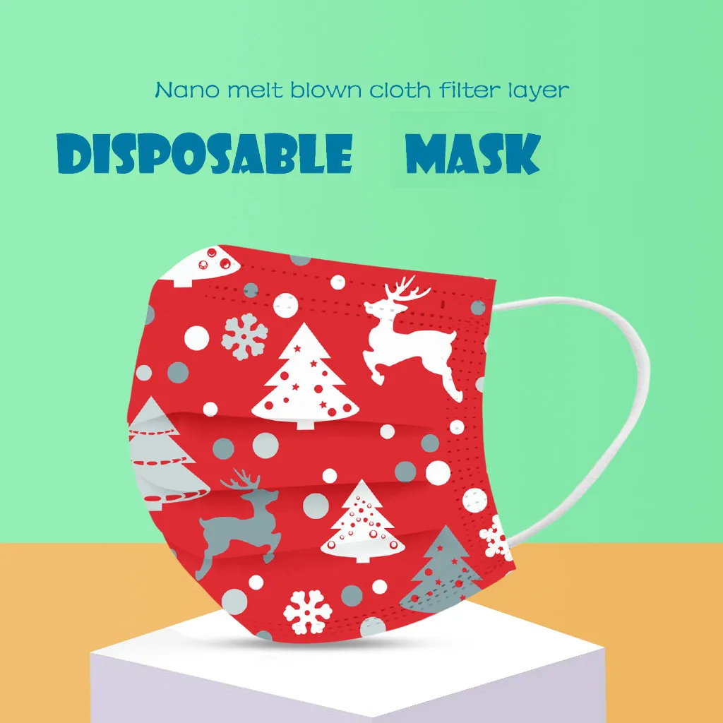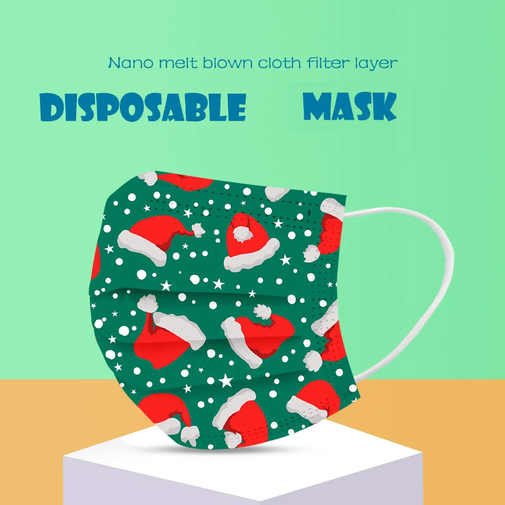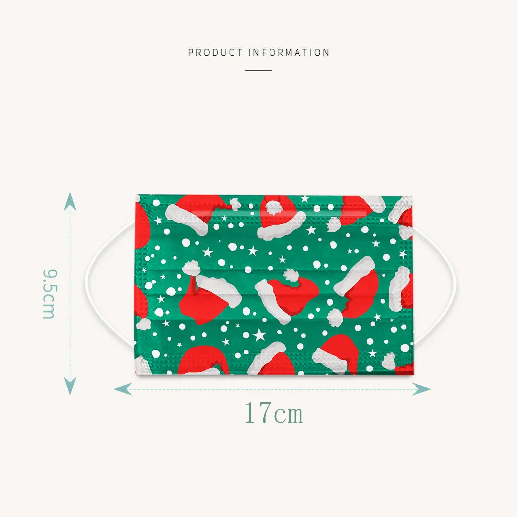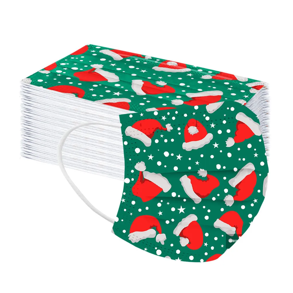 Женская Мужская Рождественская маска одноразовая маска для лица Промышленная 3 слоя петля 50 шт маска