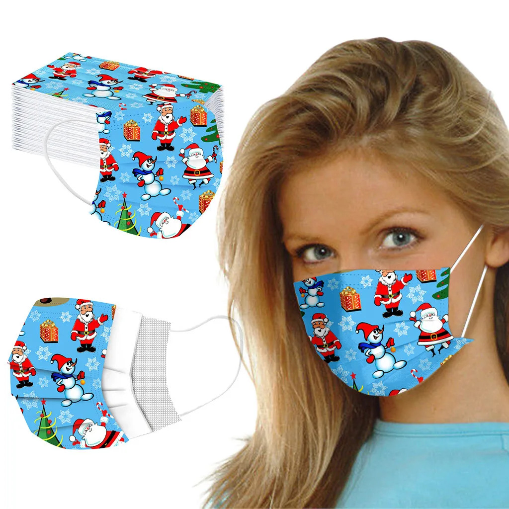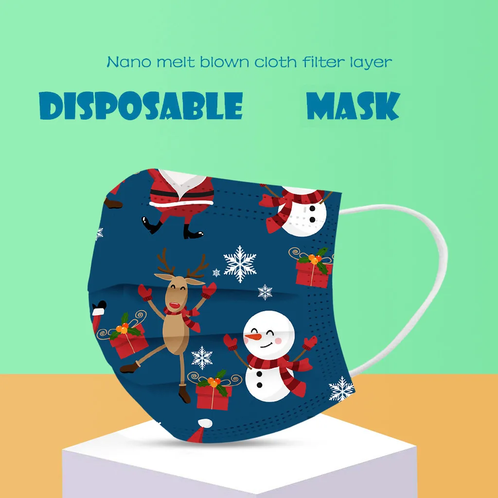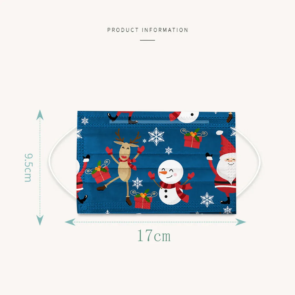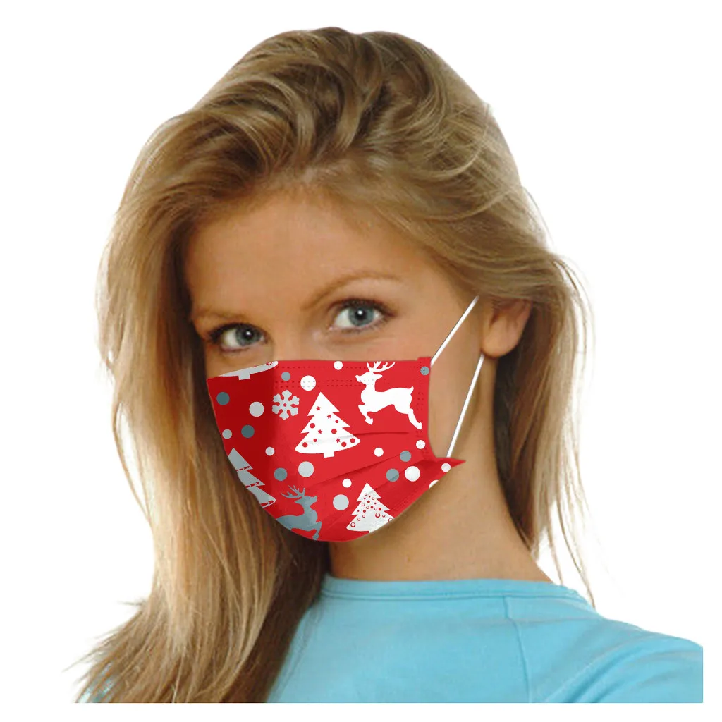 Женская Мужская Рождественская маска одноразовая маска для лица Промышленная 3 слоя петля 50 шт маска