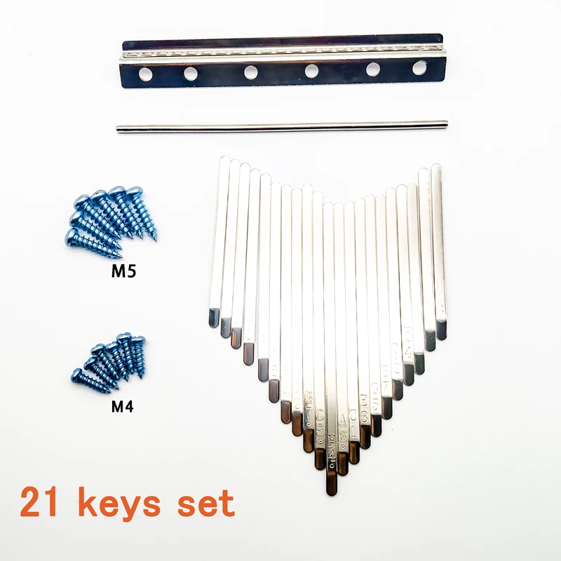 Особенности: 1. Шрапнель посылка включает в себя два комплекта винтов M4 и M5, которые могут удовлетворить ваши 2,0 см 2,3 см. 3,5 см пианино доска. 2. Конструкция нисходящего наклонного наклона, долгосрочная игра не повредит ваши руки. 3. Масштаб распознавания гравировки. 4. Есть два набора деревянных пакетов для мостов, которые являются одной из клавиш, влияющих на качество звука вашего калимбы, и качество звука розового дерева будет лучше. (Ссылка на заказ: //kalimba.aliexpress.com) Шкала надписей: C major Материал: Высокая марганцевая сталь Используется для: 21 ключи калимба Рекомендуется заказывать, если у вас есть понимание калимбы, После получения продукта, он сгибается и деформируется, и может быть отрегулирован и сплющен. Это нормально