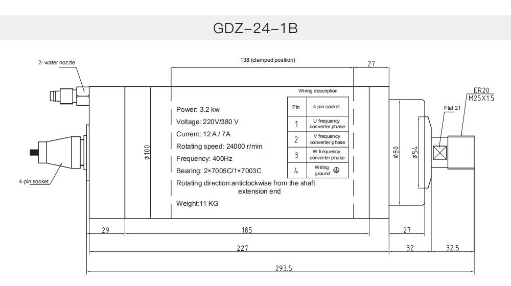 1. Hi-Q 1,5/2,2/3.2KW 220V / 380V ER11 ER20 шпиндель с водяным охлаждением 4 подшипника