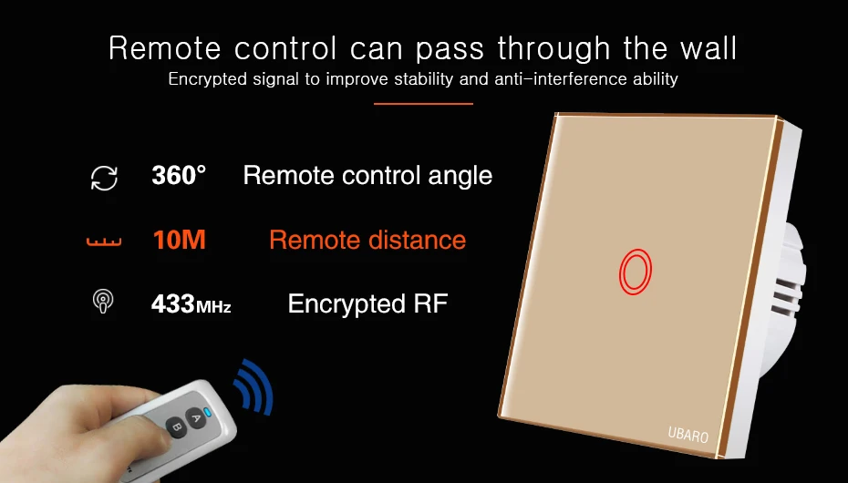 433RF вы можете управлять светом дома в любом месте вашего дома, в пределах 30 метров прямой линии