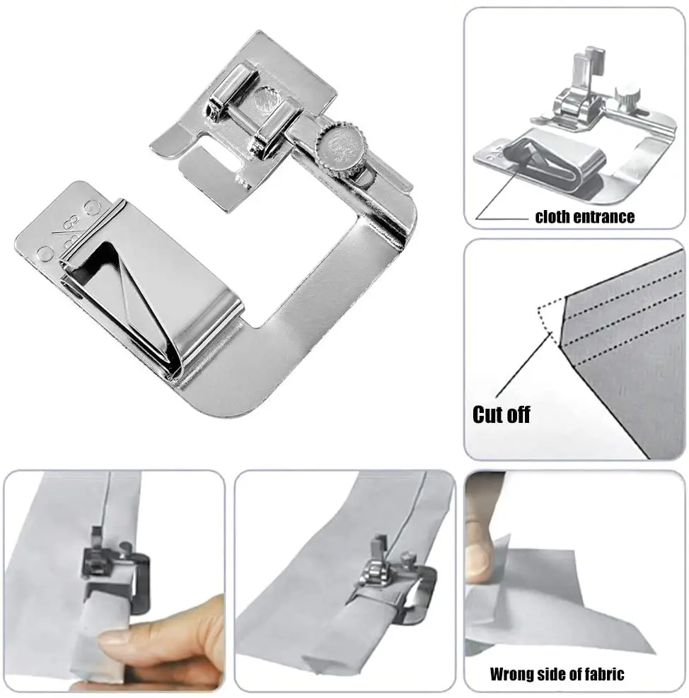 Посылка включает: 3 шт. узкая окантовка; 3 шт. широкий Свернутый Край стопы; 10 шт. 75/11 иглы швейной машины 10 шт. 90/14 иглы швейной машины 10 шт. 75/16 иглы швейной машины