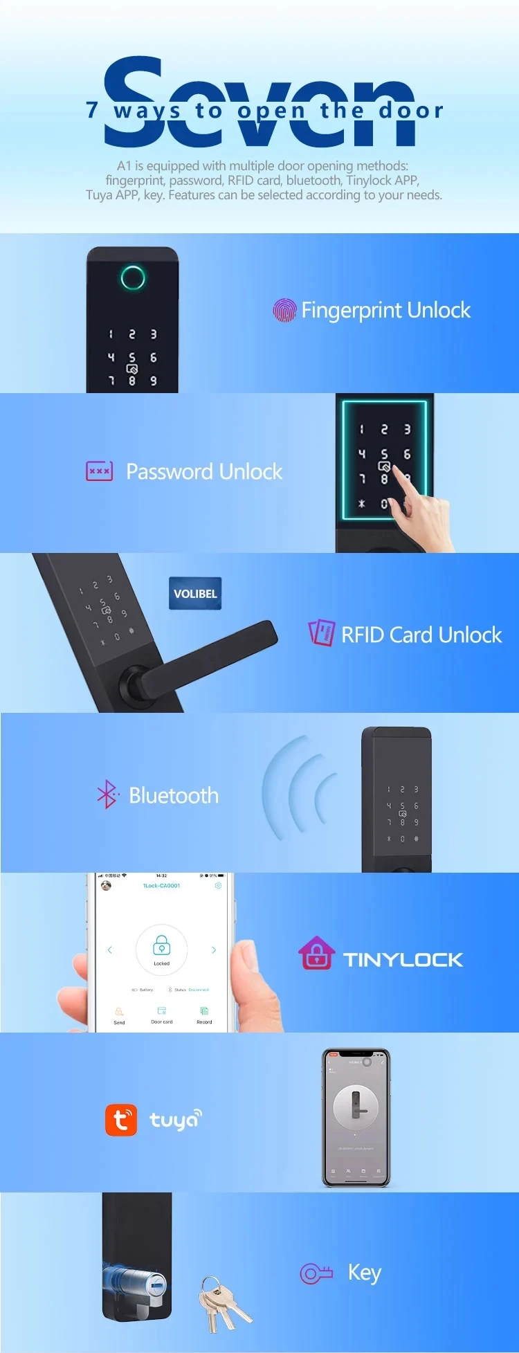 Wifi Electronic Smart Door Lock With Tuya App, Security Biometric Fingerprint Intelligent Lock With Password RFID card