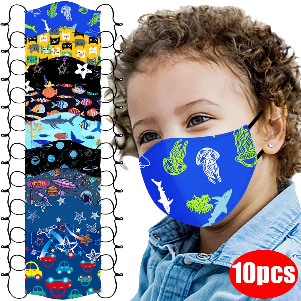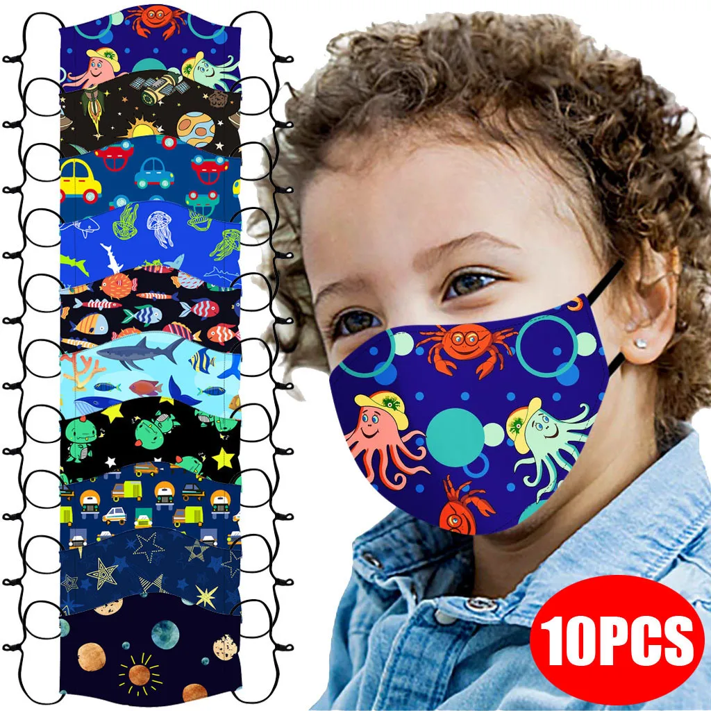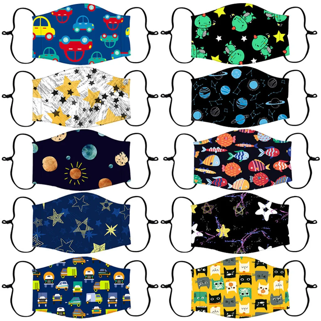 10 шт. детская Регулируемая ветрозащитная многоразовая маска для лица с принтом
