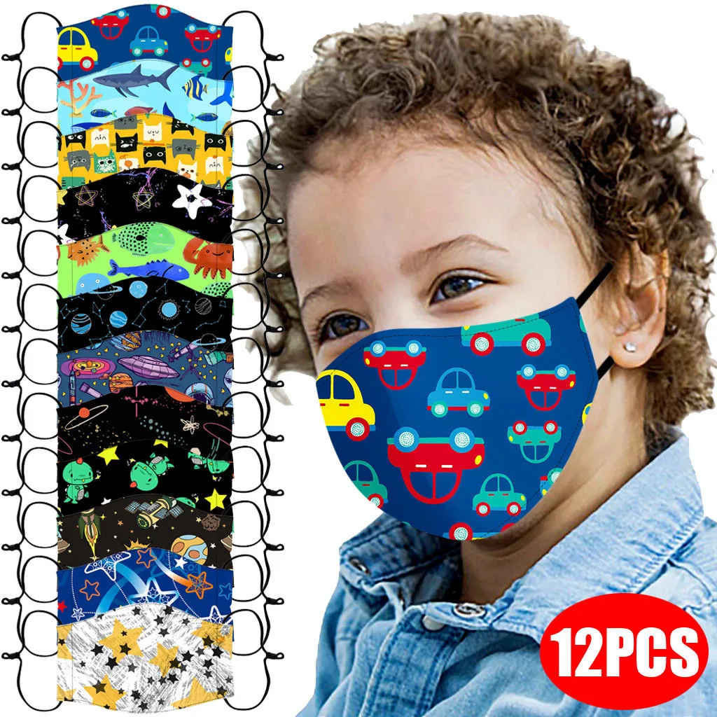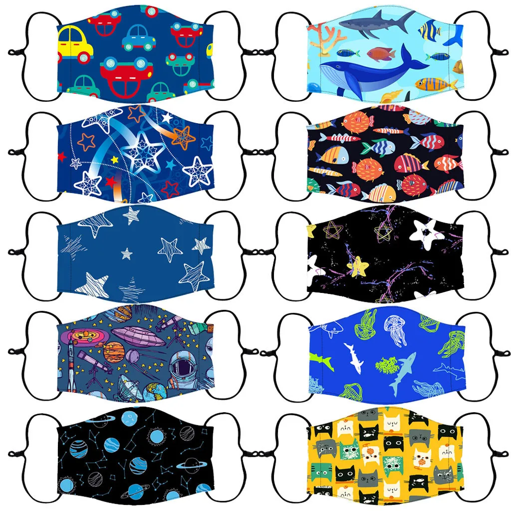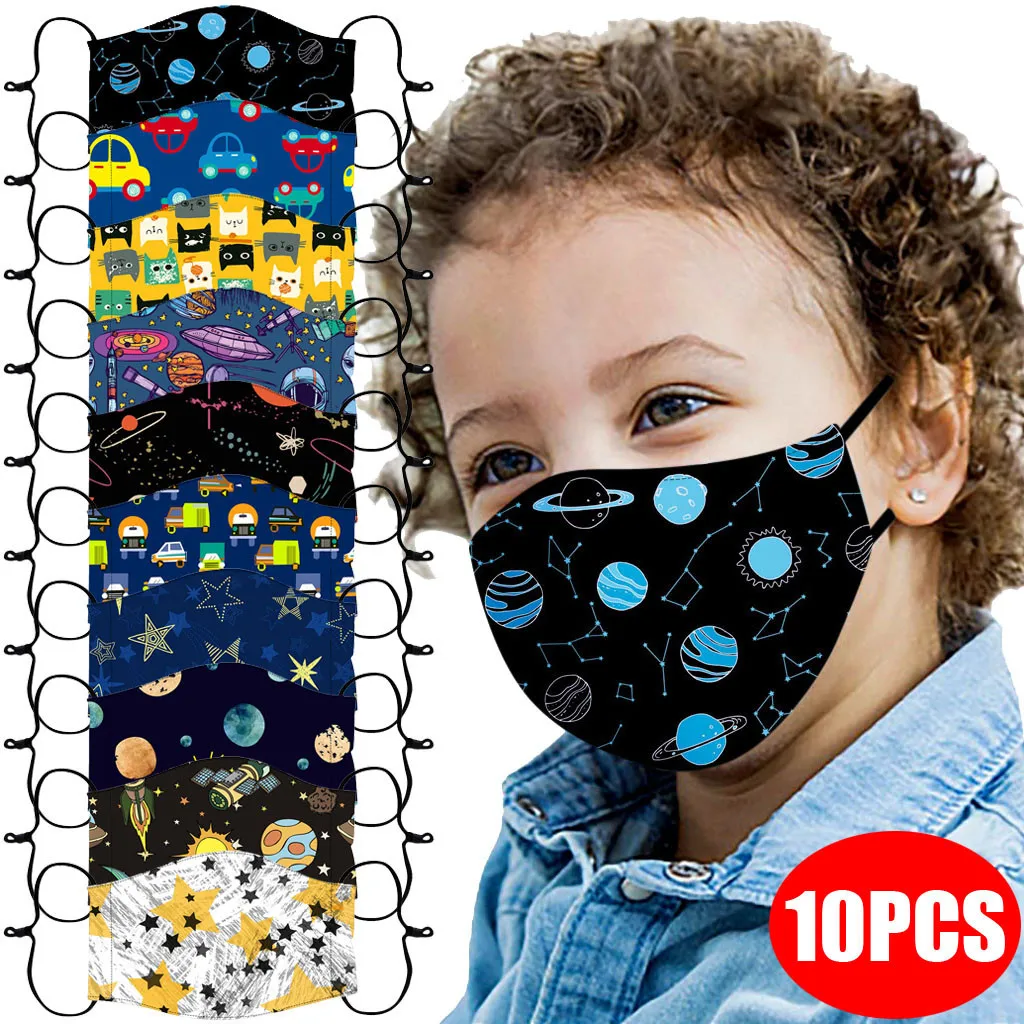 10 шт. детская Регулируемая ветрозащитная многоразовая маска для лица с принтом