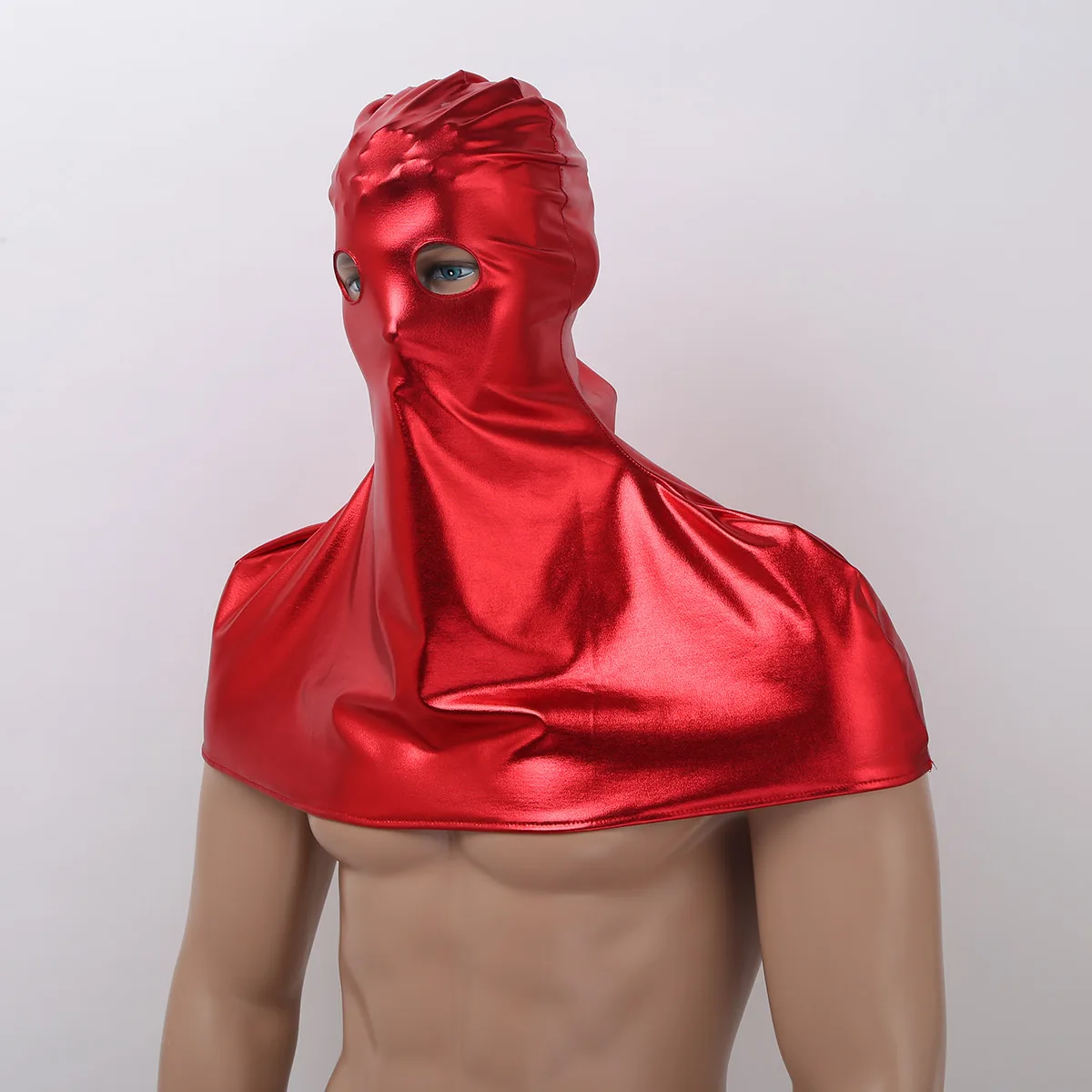 Unisex Sexy Erotic Latex Mask Hood Headgear Men Women Shiny Metallic Open Eye Hole Headgear Full Face Mask Hood for Adults Role Play Costume