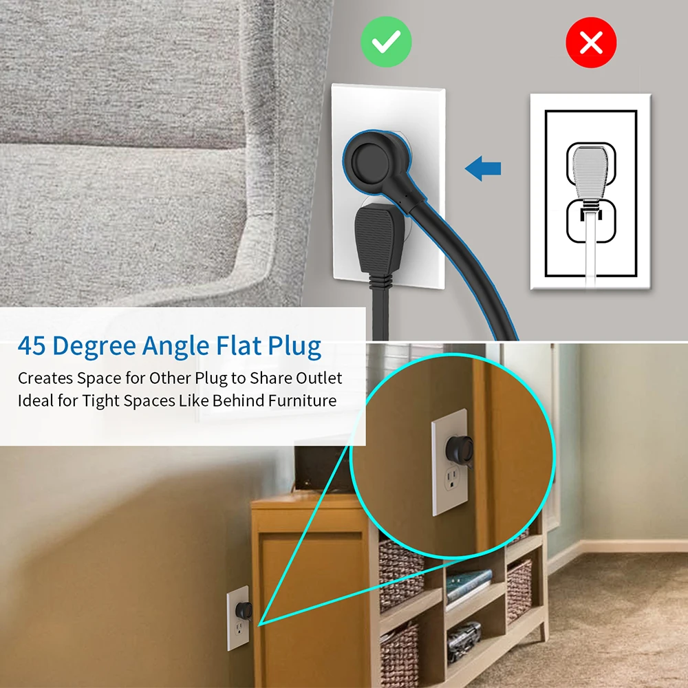 Создает пространство для других штепсельных розеток, идеально подходящих для узких мест, таких как мебель. Прочная медная проволока для обеспечения безопасности электричества.