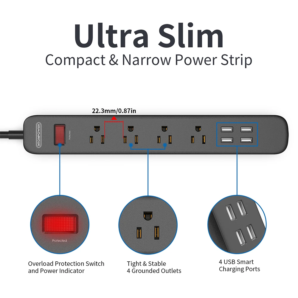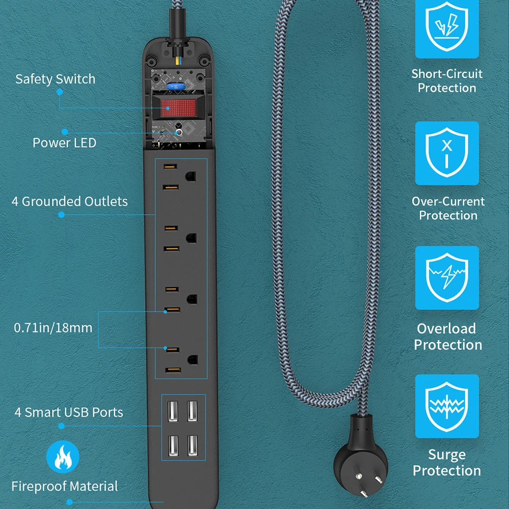 1. Компактный и тонкий дизайн, 4 порта переменного тока + 4 порта USB, что обеспечивает идеальную универсальную зарядку. 2. Плетеный провод легче обычного провода и удобнее носить с собой. 3. Встроенная интеллектуальная зарядка IC, может обеспечить до 5V2.4A идеальный ток для одного порта; Всего 5V4A 20 Вт. 4. Вдали от пожароопасности, с 750 °C огнеупорный PC + ABS материал. Интегрированная медная конструкция и защитные ворота для детей обеспечивают большую защиту. 5. Гарантия: NTONPOWER power strip предлагает 18 месяцев гарантии с даты размещения заказа. Поэтому, если вам нужна помощь, пожалуйста, не обращайтесь к нам.