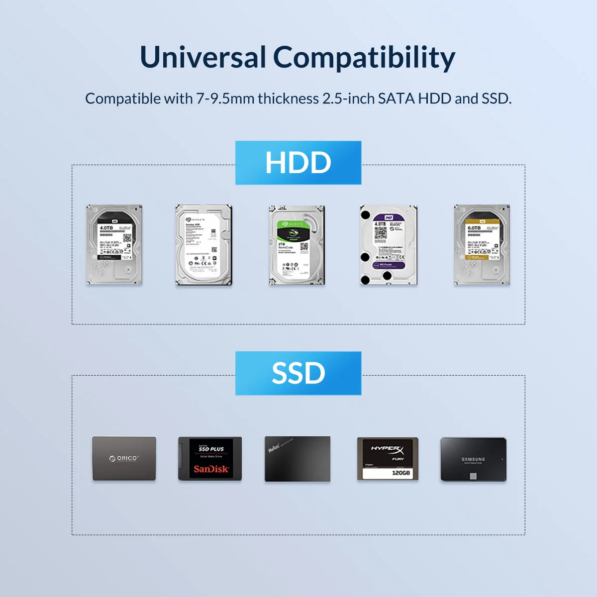 Для 2,5 дюймового SATA HDD/SSD Примечание: этот жесткий диск не включает жесткий диск.