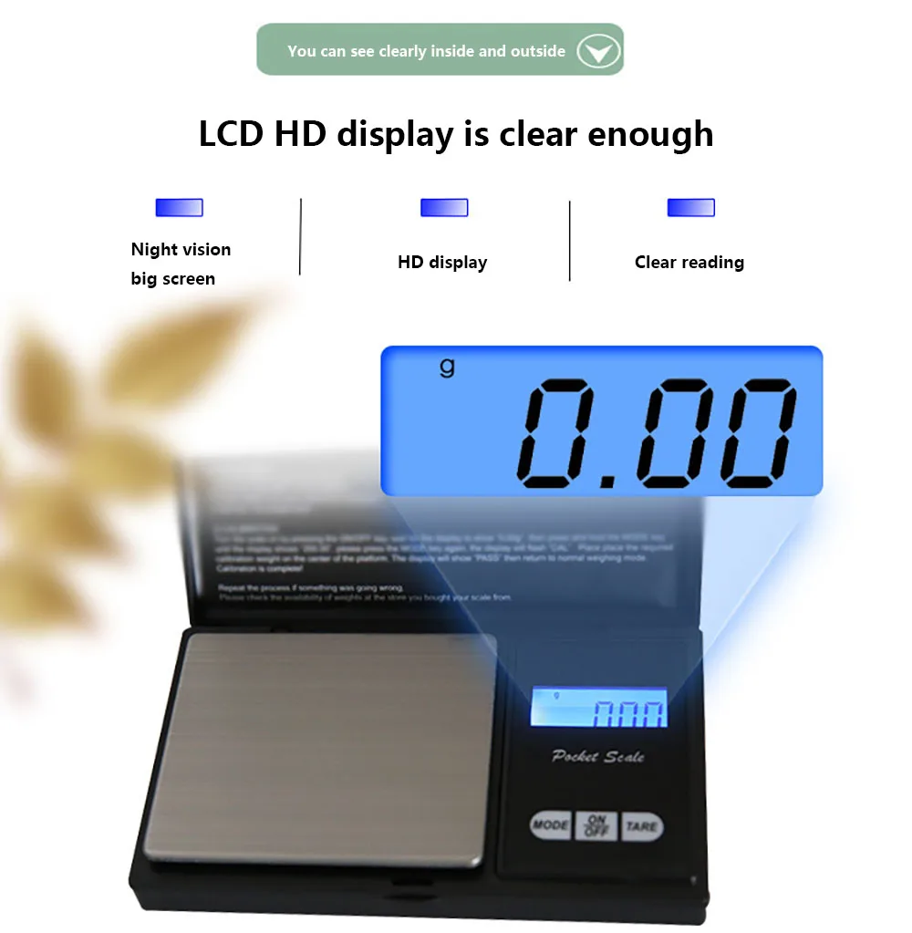 1. Высокая точность: Будьте профессиональным карманным шкалом для измерения всех видов предметов или предметов. 2. Портативный мини-дизайн: компактный дизайн этих весов с их небольшим размером, функция автоматического отключения. 3. Удобно носить с собой: маленький размер и легко носить с собой, возьмите его в любом месте. 4. Идеально подходит для взвешивания специй, алмазов, монет, золота, лекарств и т. д. 5. Единицы измерения: g / gn / oz / ozt / ct / tl / dwt 6. Легко читается: ЖК-дисплей с синим подсветкой для удобного просмотра (светильник можно выключить).