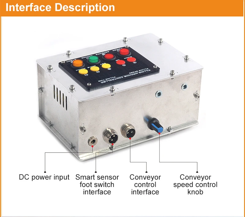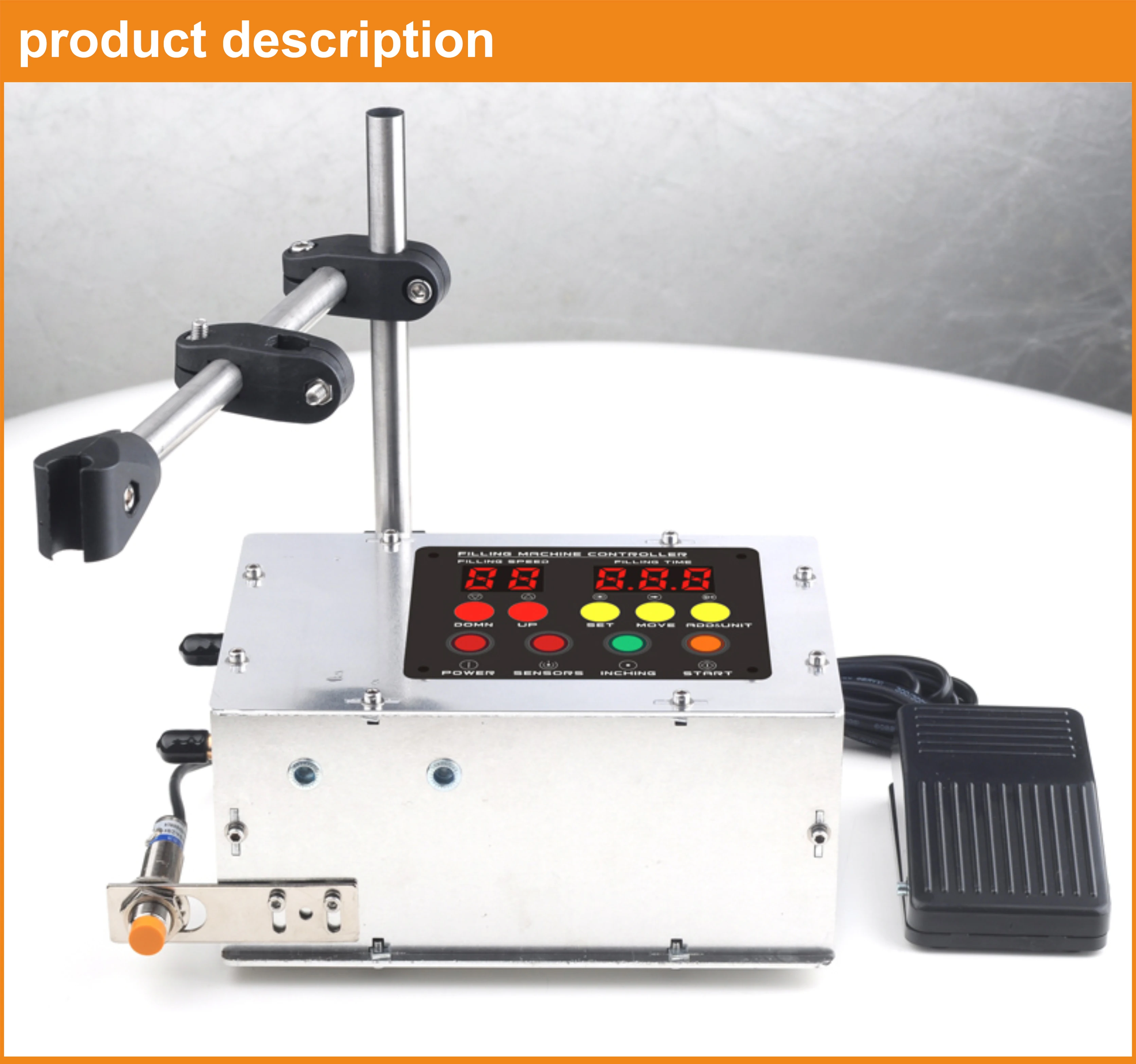Праммеры для продукции Напряжение 110В/220В Входное voltage100V-240V устройство питания Входное напряжение машины 12В 5А DC источник питания Время заполнения 0,1 с-999 мин Максимальный поток 1,5 л в минуту Диапазон заполнения volume2ml-3000ml / 1 мл-1500 мл Ошибка заполнения +/- 1% Функция защиты от капель Ручное управление, автоматическое и Интеллектуальное обнаружение Интеллектуальная distance0-5mm обнаружения Регулируемый кронштейн до 255 мм Рабочий режим 1. Когда красный светильник включен, это означает, что функция интеллектуального датчика и функция переключения ног доступны. Можете ли вы подключить линейный датчик smart switch или линейный ножной переключатель к порту управления? 2. Когда зеленый светильник включен, это означает, что насос работает и зеленый светильник выключен, это означает, что насос прекратил работу. Это также кнопка jog function. Нажмите один раз, чтобы заполнить 3. Желтый светильник: это ручной переключатель, который может установить время заполнения и громкость, а затем нажмите желтую кнопку, чтобы заполнить его непрерывно, Характеристики продукта: 1. Подходит для напитков, ликера, соевого соуса, сока, молока, лосьона и т. д. 2. Автоматическая электрическая индукция глаз, интеллектуальное наполнение более эффективно 3. Микрокомпьютерная система управления, высокая точность синхронизации достигает 0,1 секунды 4. Удобный дизайн, съемные водопроводные трубы, передние и задние кронштейны могут быть установлены 5. Вход и выход могут быть удалены и заменены 6. Две модели имеют два встроенных термостойких насоса, которые могут разряжать воду или отключать один из них одновременно. Заказы После 1 сентября 2020 будут оснащены только модернизированными оптоволоконными датчиками