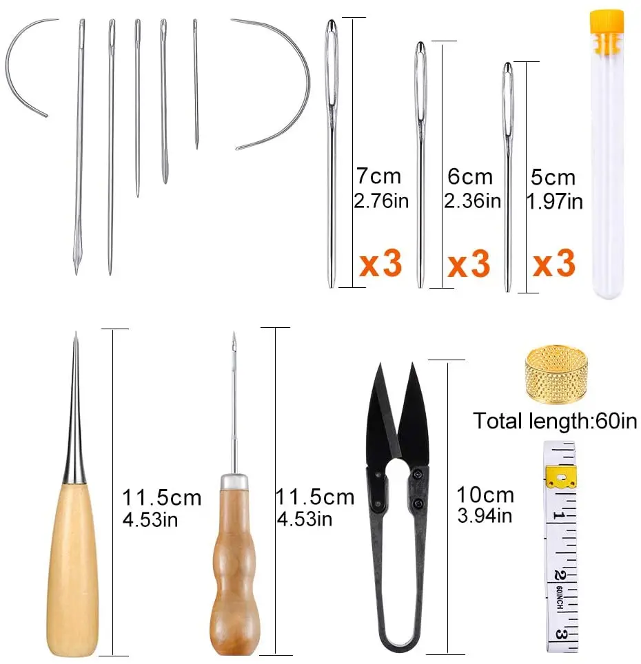 Кожаные Швейные иглы, кожаные швейные нитки, шило, наперсток для шитья, линейка.