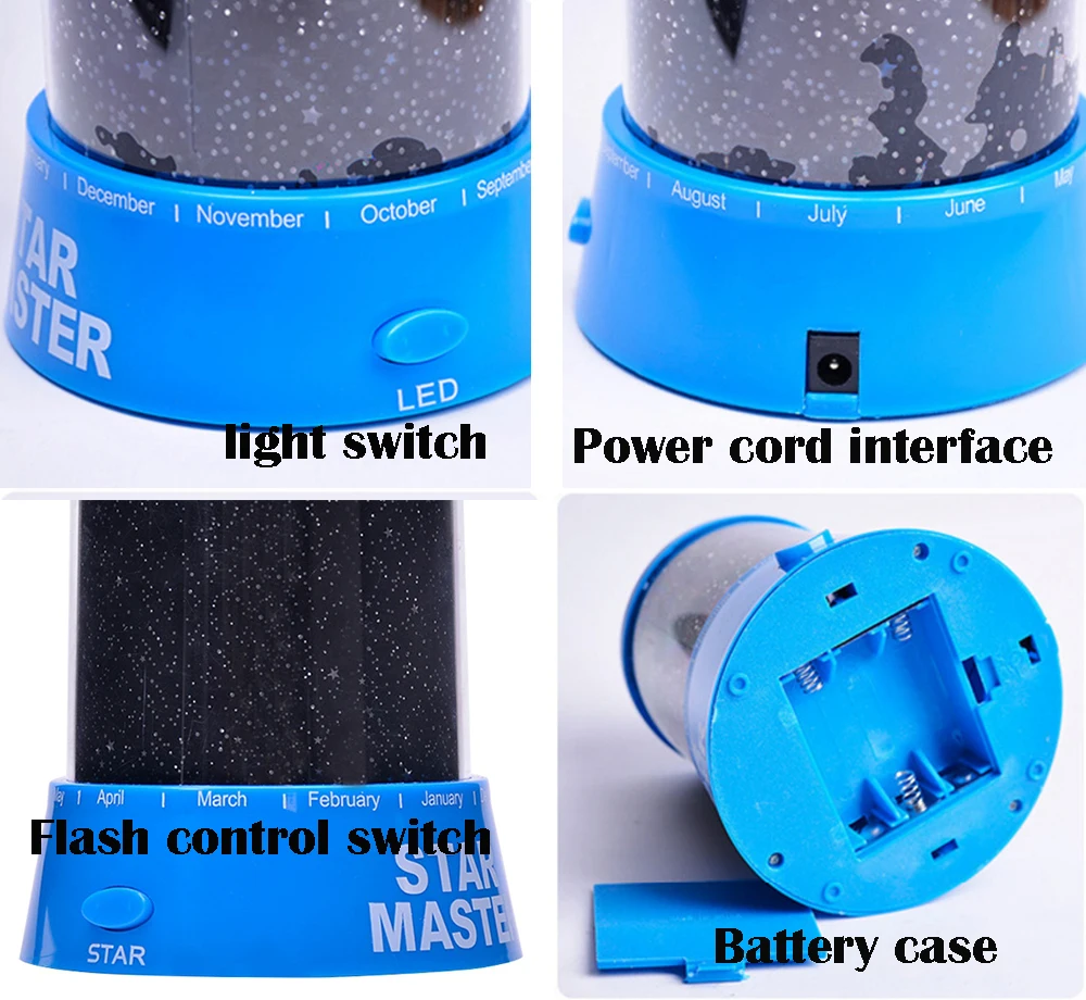 2 переключателя управляют светильник s, Один контролирует чистый желтый светильник посередине, а другой контролирует 3 цветных светильник s, которые мигают красный, синий, красный и зеленый. Положите вселенную домой, дайте вам кусочек неба, меняющий цвет. Энергосбережение, низкое тепло и длительный срок службы. Романтический сюрприз для вас. Декор вашей комнаты, дома. Подходит для спальни, домашнего дисплея, подарка и других романтических мест. Описание: Материал: пластик Размер: 12,5*11 см Количество: 1 шт. Режим питания: 3 батарейки типа АА, USB (не входят в комплект) Посылка включает в себя: 1 * Романтический светодиодный прожектор