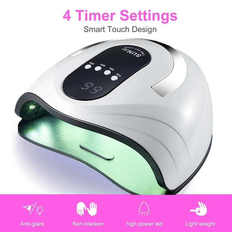 4 + 1 дизайн таймера и умный датчик: умный пресс, 4 настройки таймера (10s 30s 60s 99s), плюс время размораживания 120s, низкая тепловая модель, может легко контролировать время отверждения, и это будет автоматический обратный отсчет, полностью освободит ваши руки. Разработан с автоматическим датчиком для включения/выключения (без переключателя). Включайте светильник. Выключает, выключает светильник.