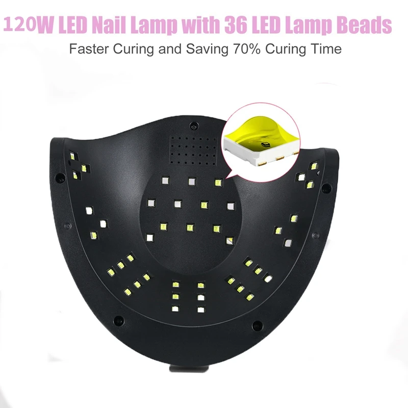 Быстрое высыхание и экономия денег: 120 Вт профессиональный УФ-гель-светильник для ногтей использует передовые технологии-36 шт., светильник равномерно распределяется внутри, просто занимает 10 с, чтобы равномерно высушить гель для ногтей быстро, решить проблему с тупым концом большого и маленького пальцев.