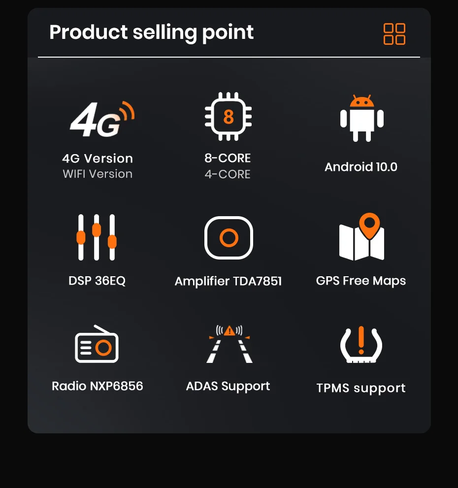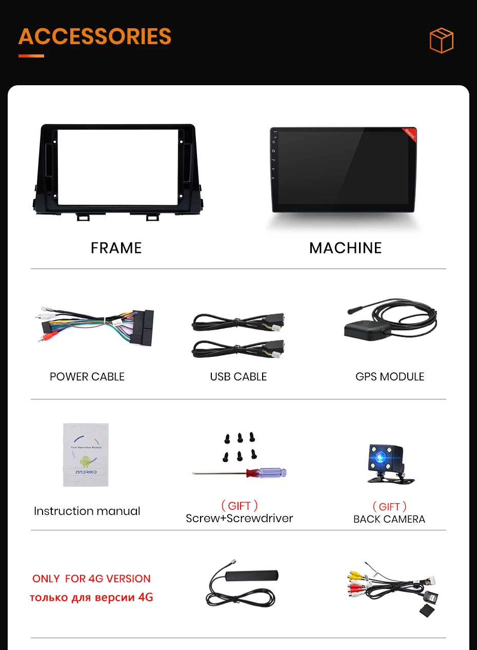 > Благодаря сети 4G и встроенному wifi вы можете наслаждаться серфингом в Интернете независимо от того, где вы находитесь, сделать его возможным для онлайн-навигации/музыки/фильма и т. д.