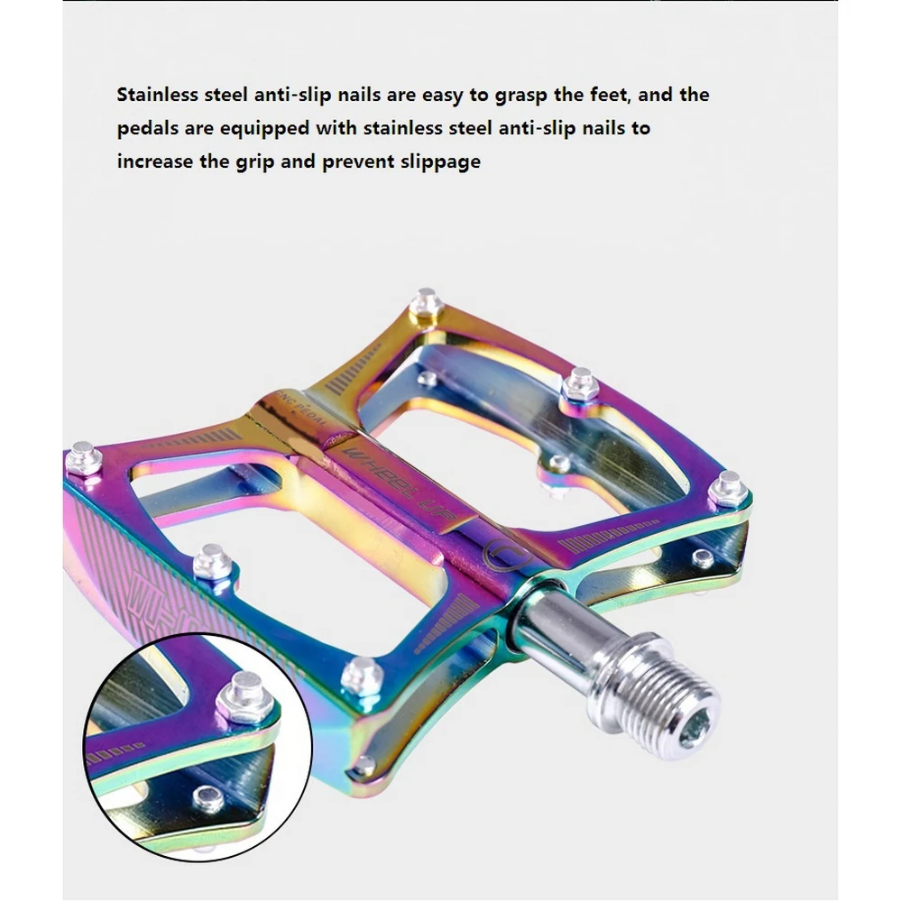 Ультралегкая велосипедная педаль, цветные MTB педали для горного велосипеда, подшипник из алюминиевого сплава, противоскользящая Радужная велосипедная плоская педаль, велосипедная часть