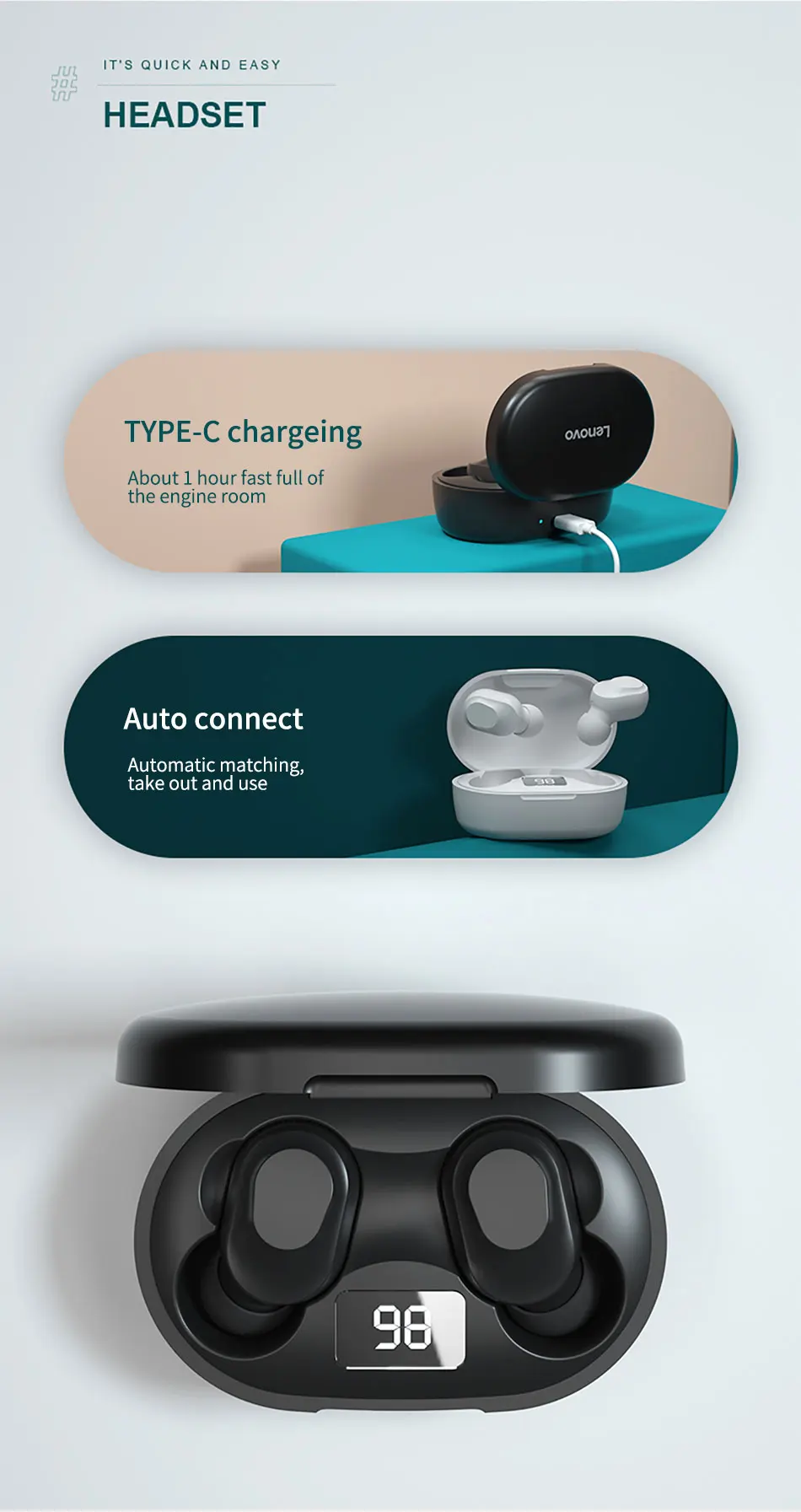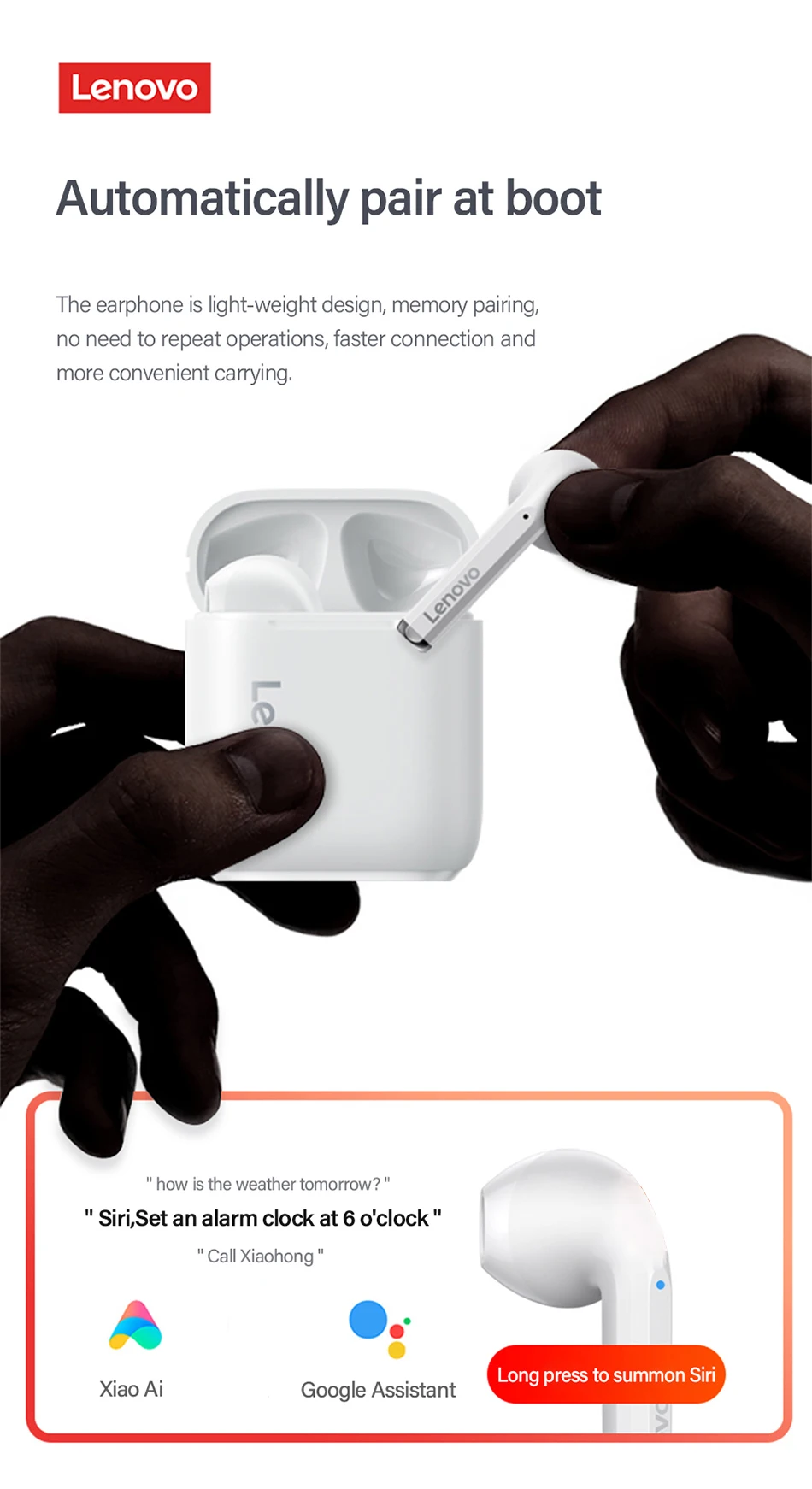 Модель: Lenovo TWS Earphone XT91 Версия Bluetooth: Bluetooth 5,0 Материал: ПК + АБС Одиночный вес наушников: Аккумулятор: зарядная коробка (300 мАч) Частотный диапазон: 20 Гц-20000 Гц Интерфейс зарядки: Micro Type-C Содержимое упаковки Наушники * 1 (слева n справа) Зарядное устройство * 1 Зарядный кабель-1 шт. Руководство пользователя и гарантийный талон * 1