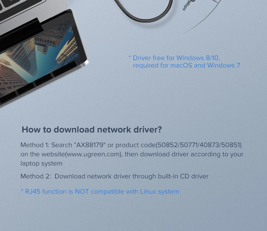 -Сетевой драйвер может быть загружен с сайта www.ugreen.com.(См. Подробное руководство по загрузке ниже)