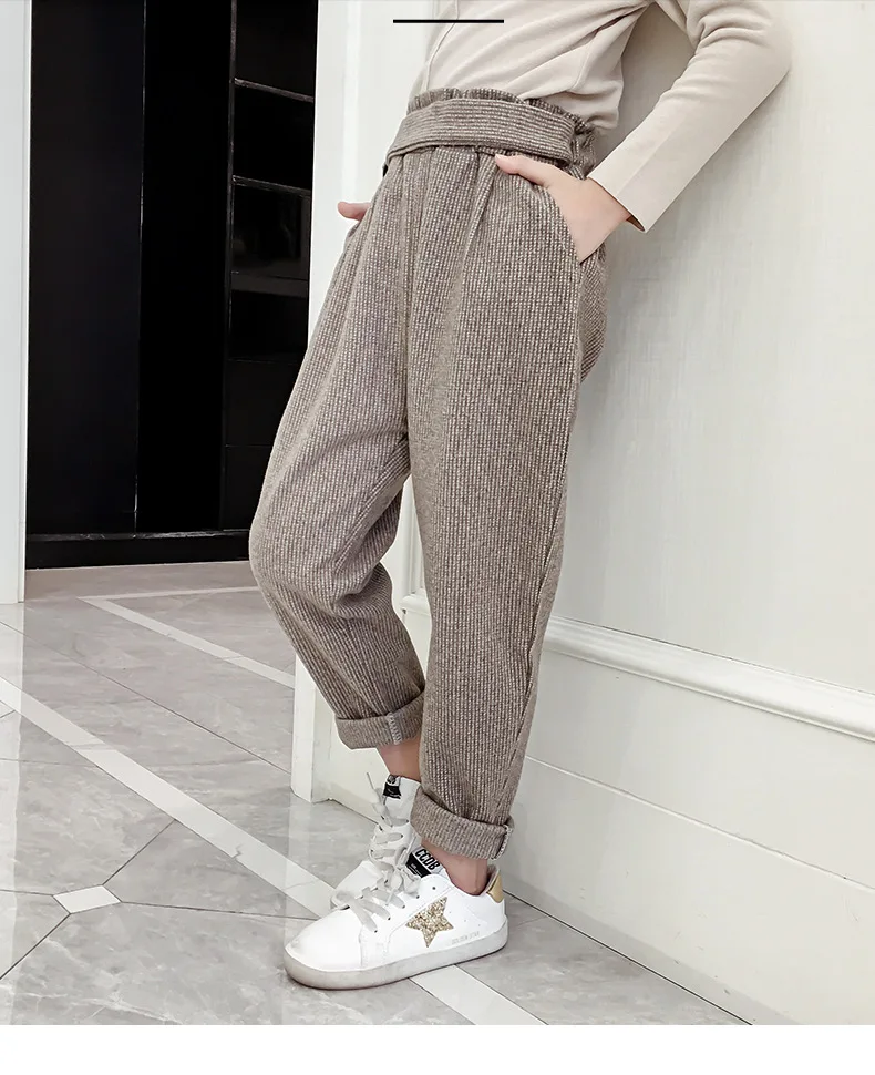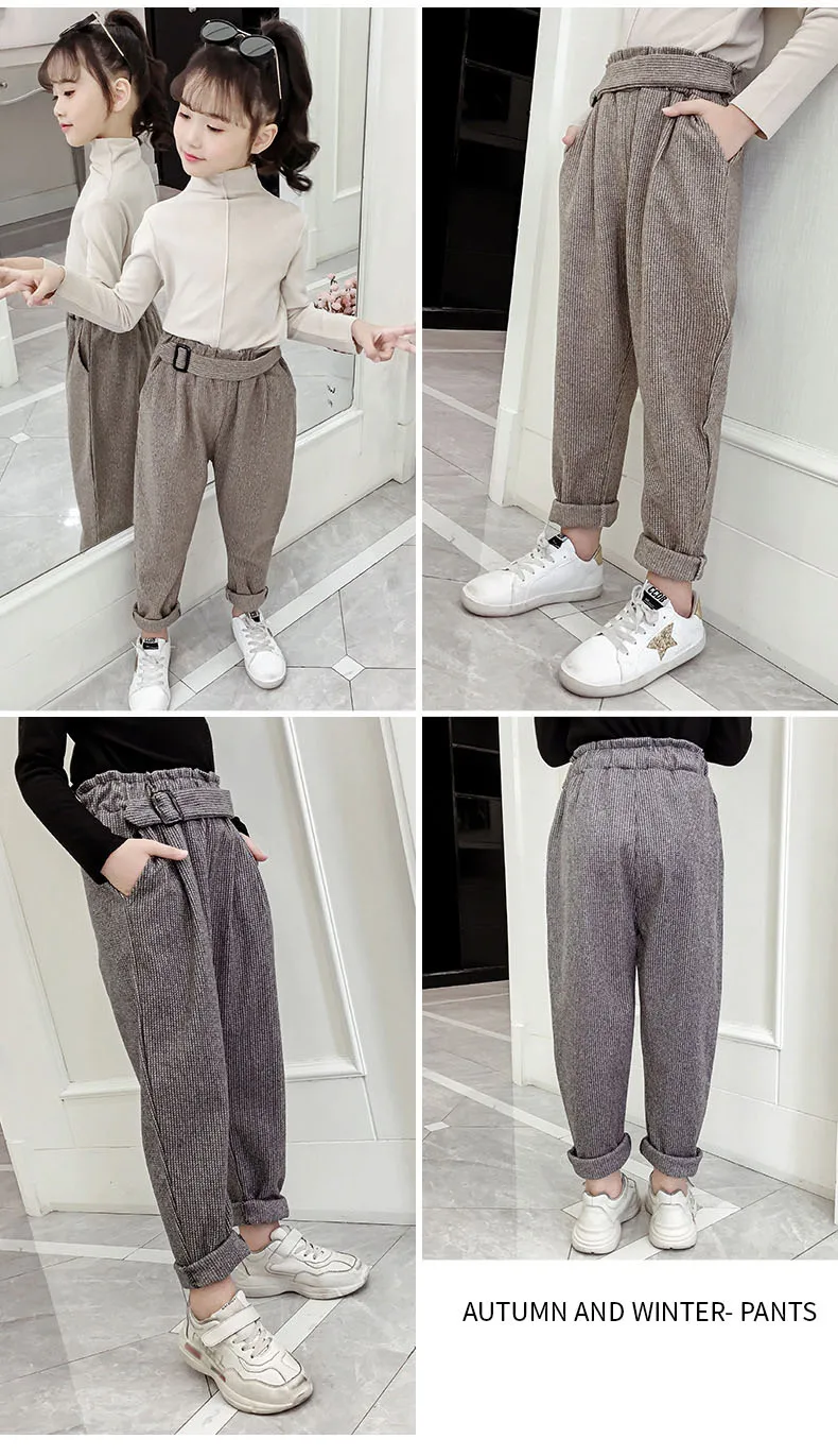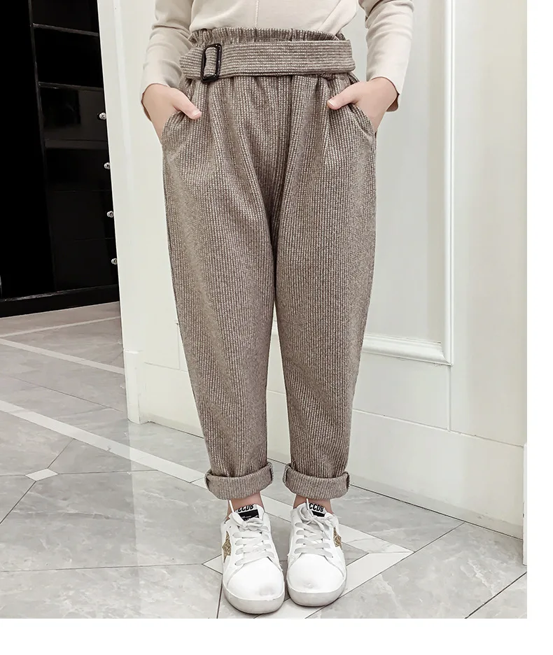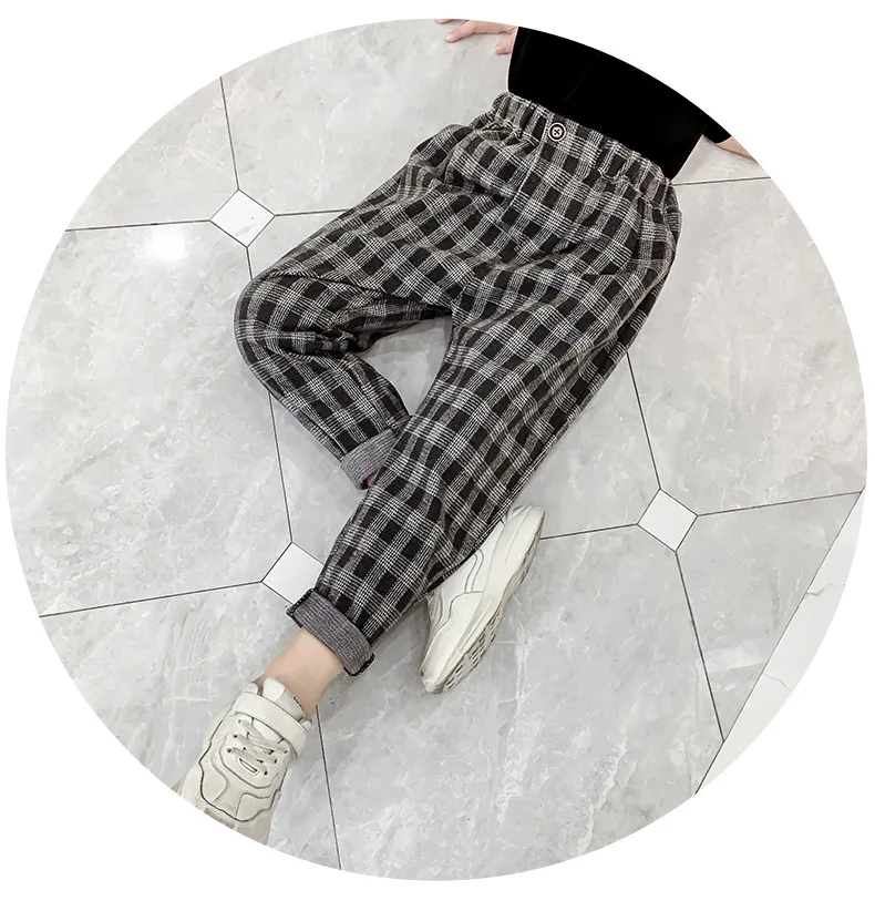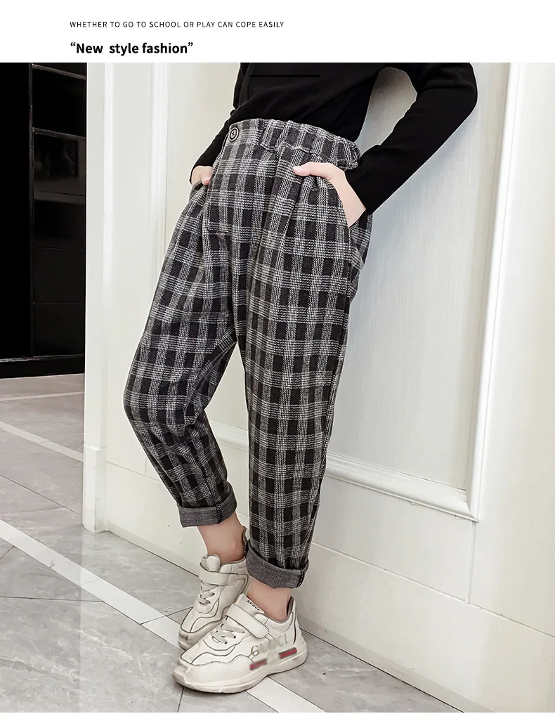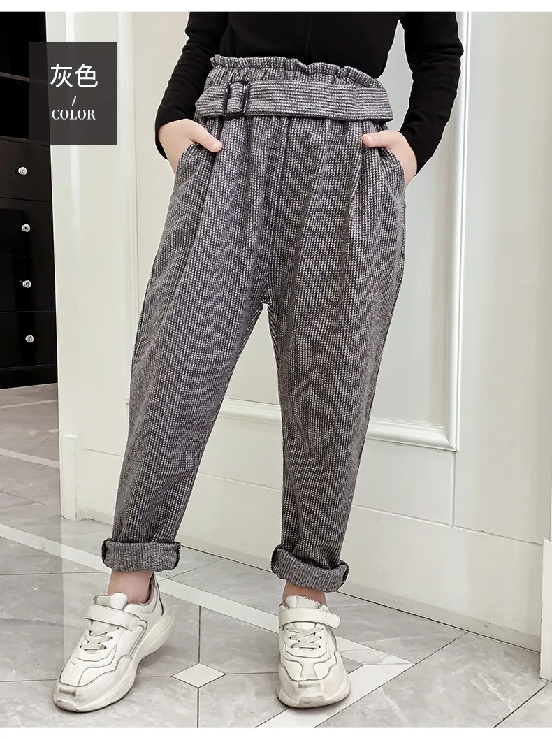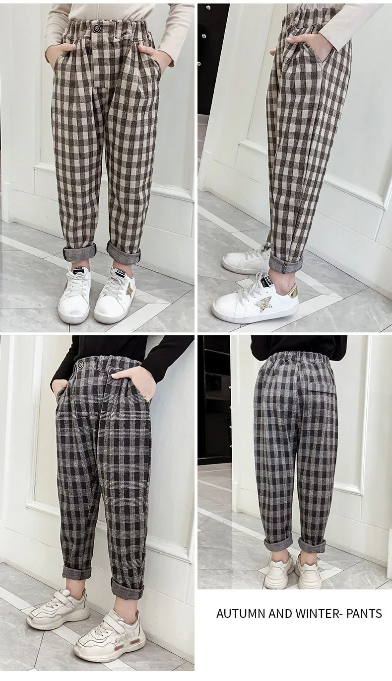 Штаны для девочек-подростков осенне-зимние повседневные шерстяные свободные клетчатые штаны в стиле ретро детские штаны-шаровары детские штаны для школьников 6, 8, 10, 12 лет