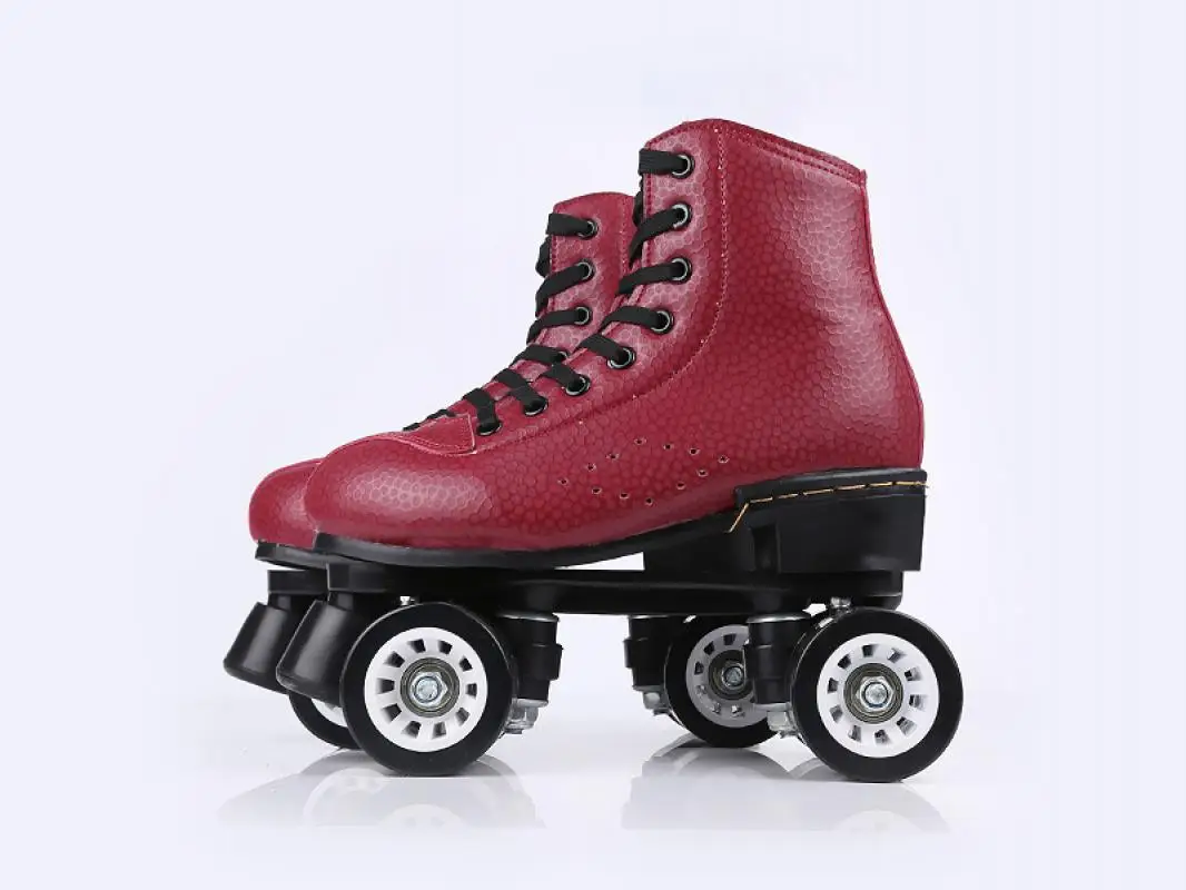 Красный Двухрядные роликовые коньки с ПУ Прочный 4-х на колесиках; Женская уличная Patin скейт обувь светодиодные колёса Роликовые кроссовки