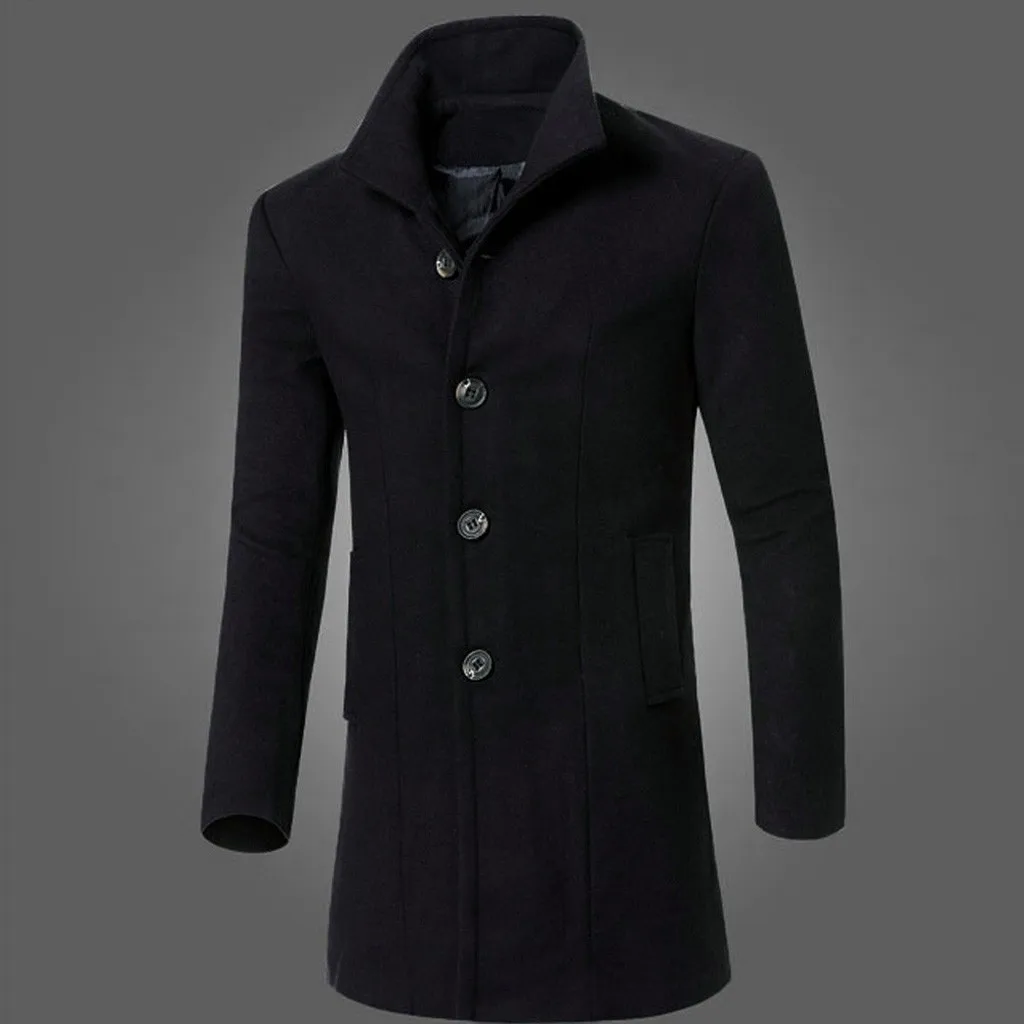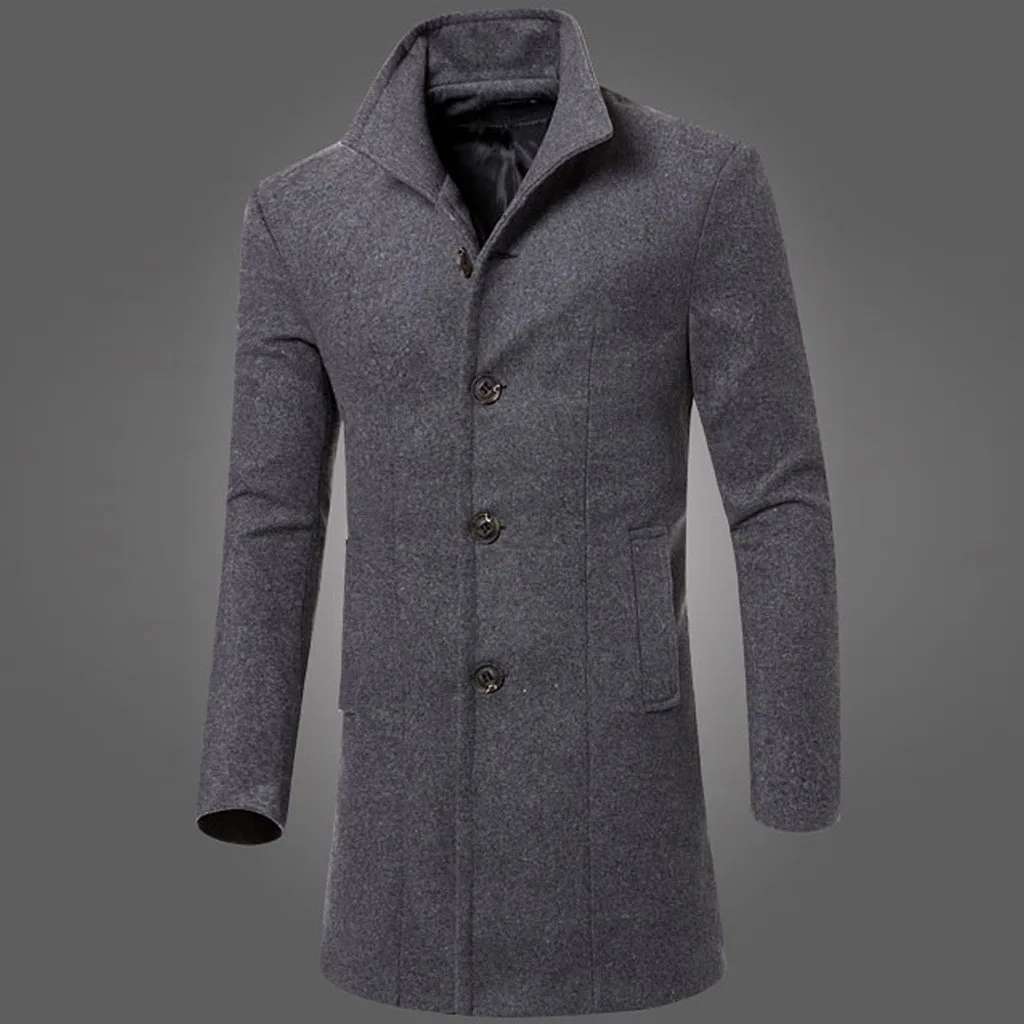 Для мужчин Куртка; Теплый зимний Тренч; Длинная Верхняя одежда; Умное пальто на пуговицах