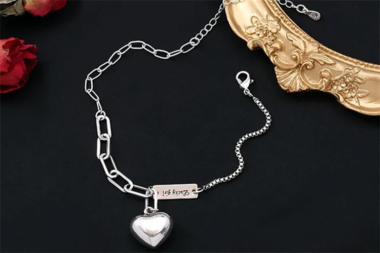 Новая мода Puck рок стиль любовь сердце буквы счастливые девушки лодыжки браслеты для женщин цепь на ноге Серебро 925 настоящий мода подарок
