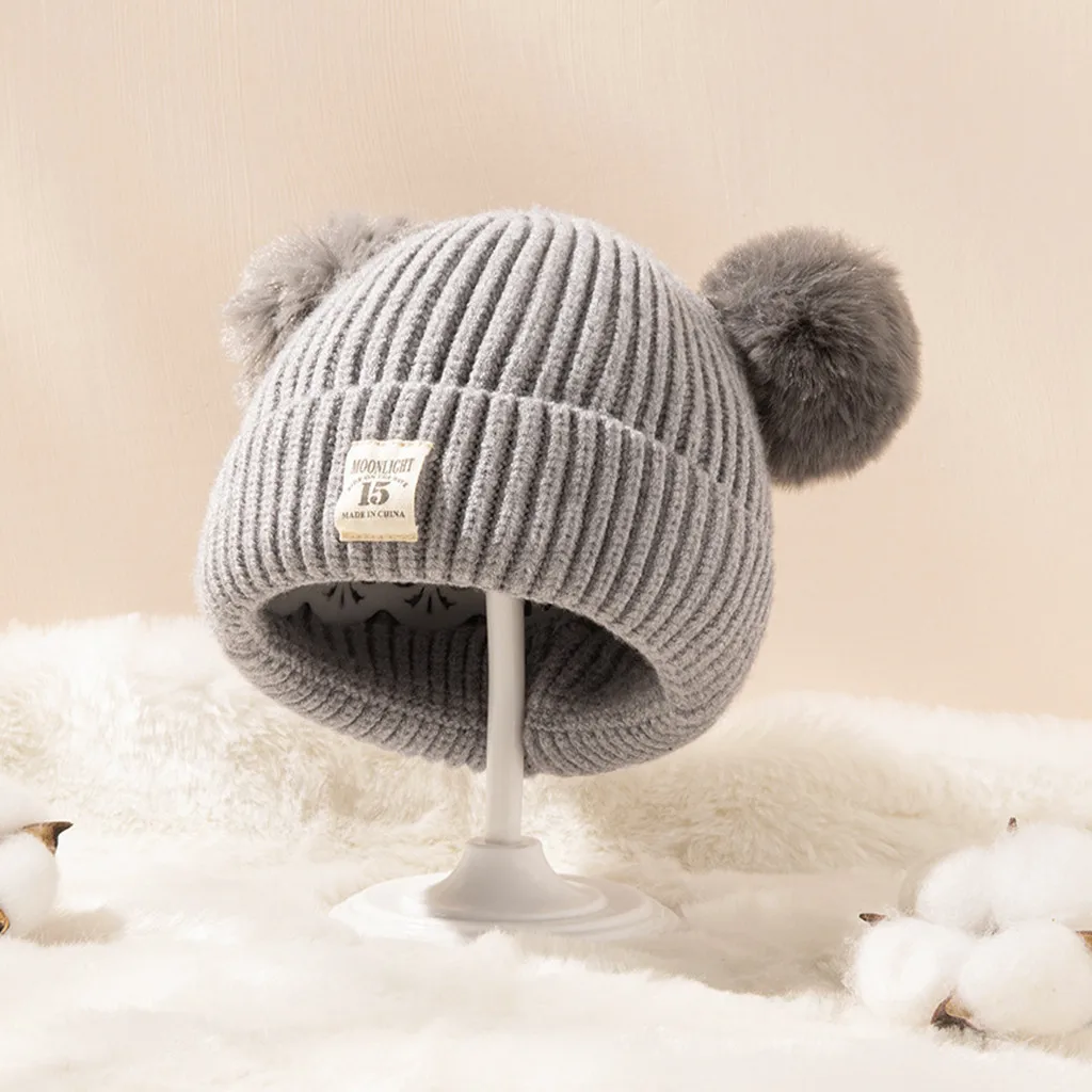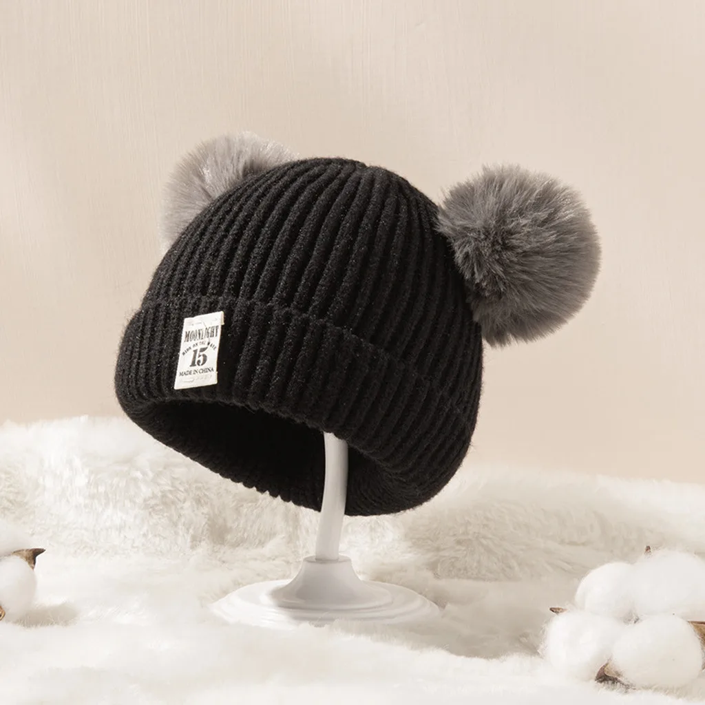 Детская вязаная шапка для мальчиков и девочек, зимние теплые шапки