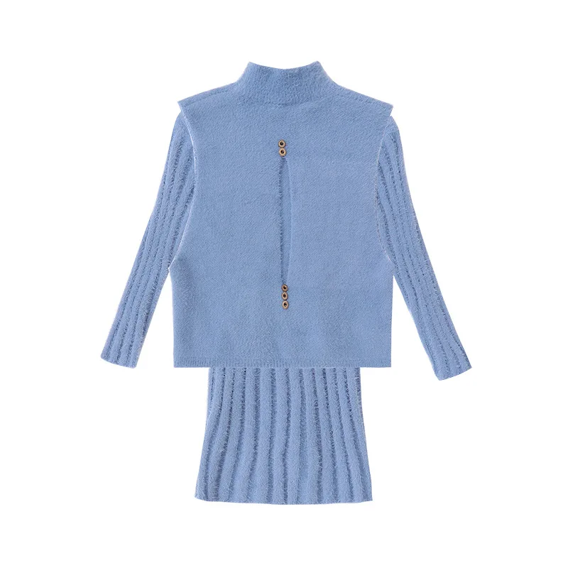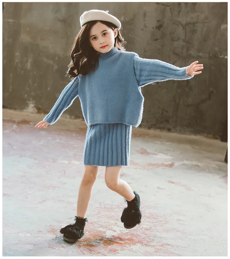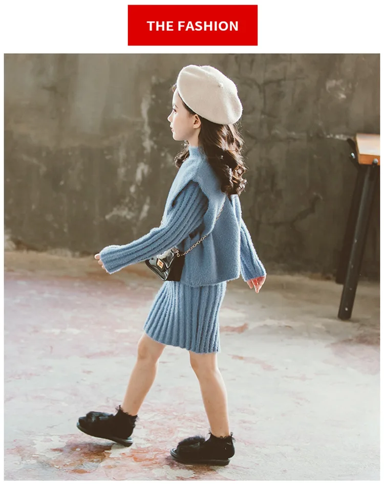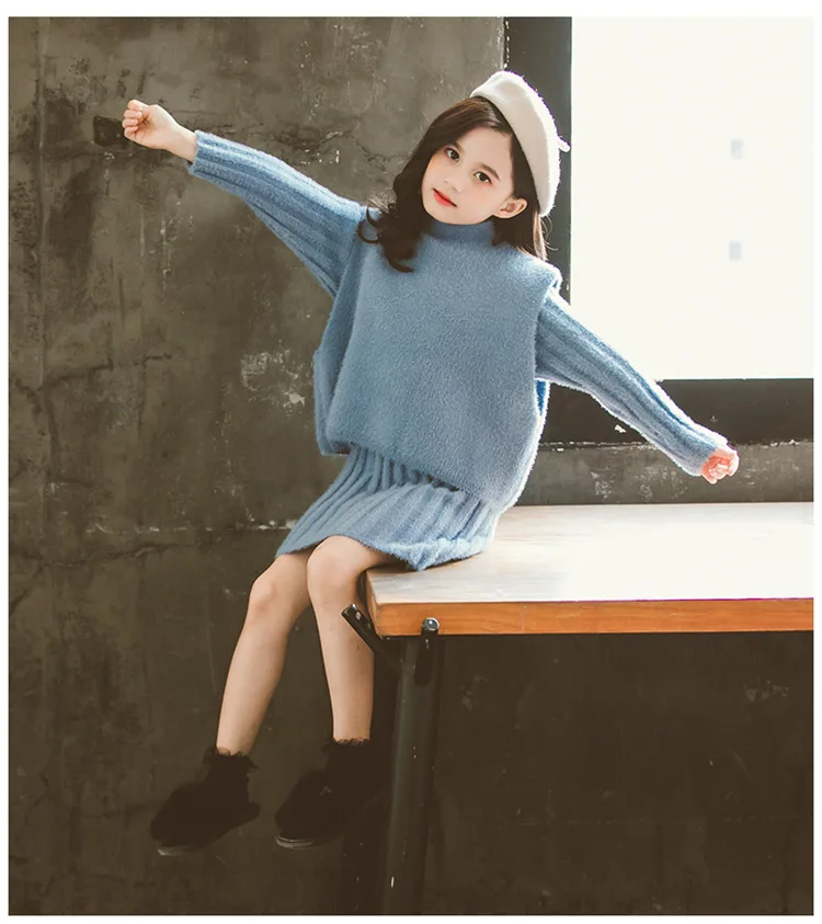 Комплект для девочек, зимний теплый жилет с длинными рукавами вязаная одежда для подростков, детский спортивный костюм утепленная одежда для маленьких девочек 8 лет