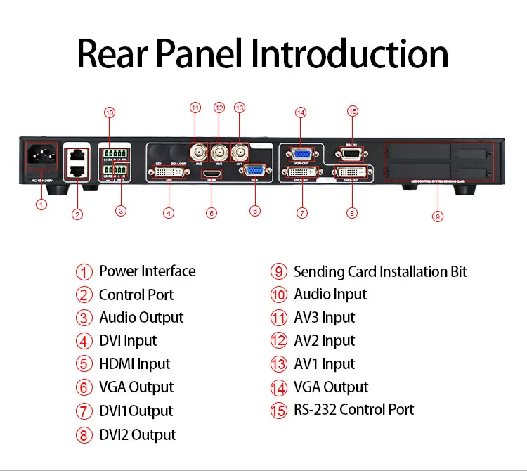 Больше видео вход-светодиодный видеопроцессор 7-канальный видео вход, 3 CVBS, 1 VGA, 1DVI, 1 HDMI,1USB. В основном охватывает гражданских и промышленных целей. Переключение всех видео входов позволяет быстро резать и выцветать переходы. Практичные интерфейсы видеовыхода-светодиодный видеопроцессор имеет три видеовыхода. 2 видеовыхода с использованием двух выходов DVI, включая выход VGA и выходы DVI, имеют один выходной разъем. После того, как эти три видео запрограммированы, чтобы отправить выход на светодиодный-карту или монитор. Плавное переключение между любым канальным светодиодный видеопроцессором также может плавно переключаться между любыми каналами переключения, время регулируется от 0 до 3,0 секунд. С эффектом выцветания Переключайте входной канал, чтобы экран можно было Переключить плавно на второй экран. С помощью быстрого переключения, переключения входных каналов; Вы можете мгновенно Переключить видео выход.