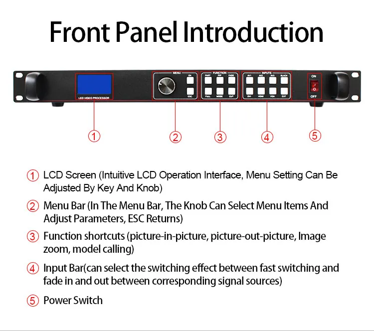 Один из ключевых черно-черных экранов во время производительности является необходимой операцией, во время производительности вам нужно закрыть выход изображения, и вы можете использовать черные клавиши для быстрого черного. Поддержка замораживания-во время воспроизведения, вам может потребоваться заморозить текущее изображение вместе, чтобы достичь «паузы» экрана. Замораживание экрана, оператор может также изменить текущий выбор входного сигнала или изменить линии и т. д., чтобы избежать фоновой операции, влияет на результаты производительности. Часть и полное быстрое переключение-светодиодный видеопроцессор простая и функциональная работа части перехват экрана и полноэкранная работа, любой один входной канал может быть независимо установлен различные эффекты перехват, И каждый канал все еще может плавно переключаться. Пользователи могут произвольно устанавливать перехват текущего канала части размера и положения экрана, а другие каналы остаются неизменными методом перехлестывания. При переключении между каналами большая часть его экрана или полноэкранная функция следующая. Режим сохранения и отзыва-светодиодный пользовательский пресет для видеопроцессора с 4 группами, каждый пользователь может хранить все параметры настройки по умолчанию, используйте «режим», предварительно установленные клавиши быстрого вызова. Может обеспечить быструю функцию резервного копирования и отзыва параметров поля. Равная и неравная строчка-это светодиодный видеопроцессор, важная часть, которая может быть выполнена в одинаковой строчке и неравномерной строчке, прострочка на значительно удовлетворит потребности пользователей. На нескольких процессорах для достижения синхронизации кадров, 0 задержки, нет хвоста и других технологий, чтобы обеспечить безупречную производительность. Неравная разделенная часть выхода совпадает с настройками изображения; Пользователь может прочитать следующие главы для инструкций. Технология масштабирования 30 Бит-светодиодный видеопроцессор с двухъядерным процессором обработки изображений, один сердечник может обрабатывать 30 технологий масштабирования изображений для достижения выхода пикселей от 64 до 2560, при достижении в 10 раз больше изображения для увеличения выхода, т. Е. Максимальный экран более 25600. Технология регулировки яркости-светодиодный видеопроцессор Уникальная функция регулировки яркости, уменьшает яркость, решенную после потери слоев, так что более точная цветопередача. Сохраненные непосредственно технологии-сохраненные непосредственно технологии для решения настроек пользователя и ручного сохранения утомительного процесса, что пользователи координации или регулировки параметров без осуществления операции искусственного сохранения, светодиодный пользовательский видеопроцессор автоматически хранится в EEPROM, даже если питание при включении, параметры до питания остаются в устройстве. 34 гамма Кривая-богатый бассейн гамма кривой, пользователи могут встретить в различных условиях светильник и использование цветовых сред. ACC & ACM фильтрация изображения-светодиодный видеопроцессор с помощью Двигателя Фильтрации изображений ACC и ACM, обработка каждого цвета, нелинейный эффект фильтрации самого низкого уровня потери изображения, восстановление точности цве