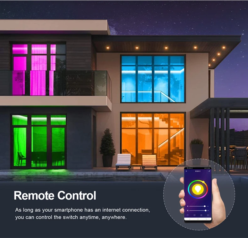【Пульт дистанционного управления 】 даже если вы не дома, вы можете управлять умной светодиодной лентой вкл/выкл с помощью телефона через приложение Tuya или smart Life. Легко установить расписание для вашей умной светодиодной ленты. Подгоняйте свой домашний светильник, например, устанавливайте светильник s, чтобы включаться в сумерках или выключаться на рассвете. Вы можете создать группу для всех ваших умных светодиодных лент и управлять ими с помощью только одной команды. Работает с 2,4 ГГц сети Wi-Fi.