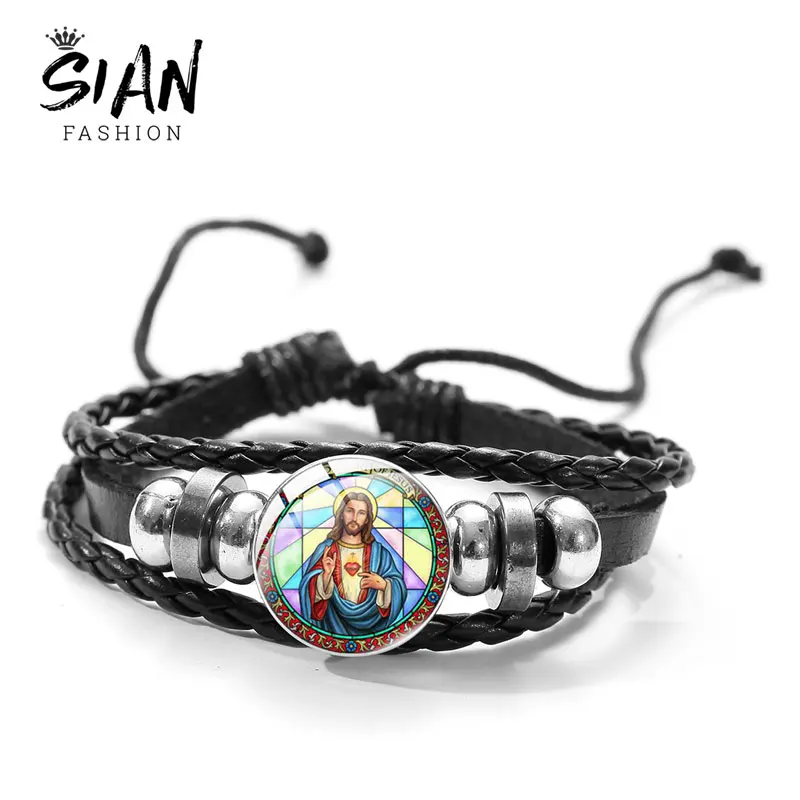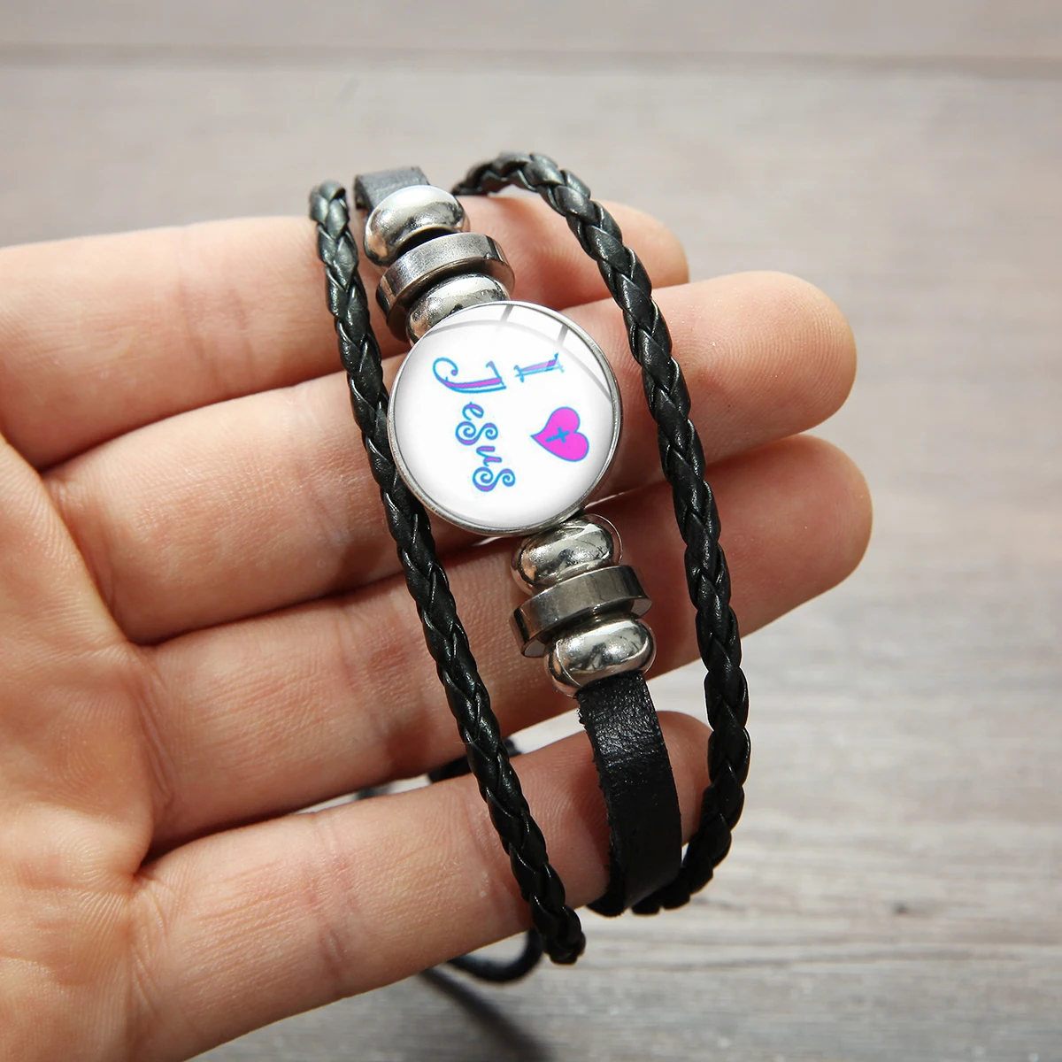 Мужские и женские кожаные браслеты SIAN I Love Jesus, плетеные браслеты с регулируемыми бусинами ручной работы, защитные ювелирные изделия