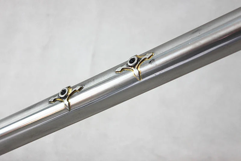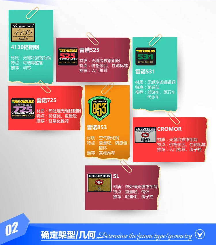Материал: хромовая молибденовая сталь 4130/525/725/ ReynoldssComlumbus труба Рамка Размеры: 46 см/51 см/53 см/55 см/58 см/60 см Колеса: 700C 650C Нижний Кронштейн: 68 мм Гарнитуры: 34 мм Вынос руля: 25,4 мм «гусиная шея» Подседельный штырь: 27,2 мм Размер передней оси: 100 мм Размер задней оси: 135 мм Вес: Рама 1750 г ~ 1950 г, вилка 680 г ~ 850 г