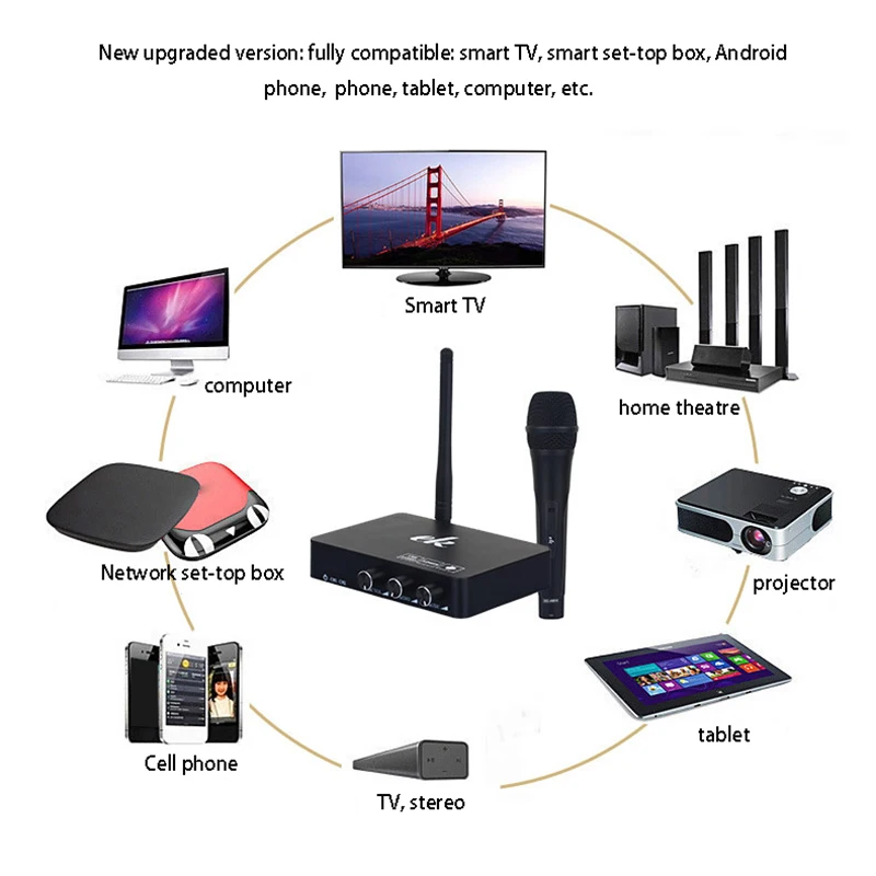 Для компьютера/Android Box мобильный телефон/планшет/телевизор, портативный динамик беспроводной микрофон Смарт караоке машина