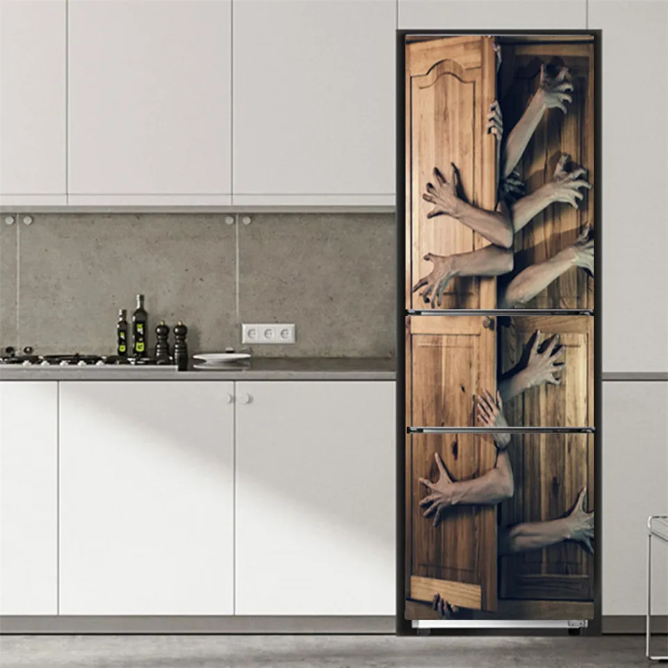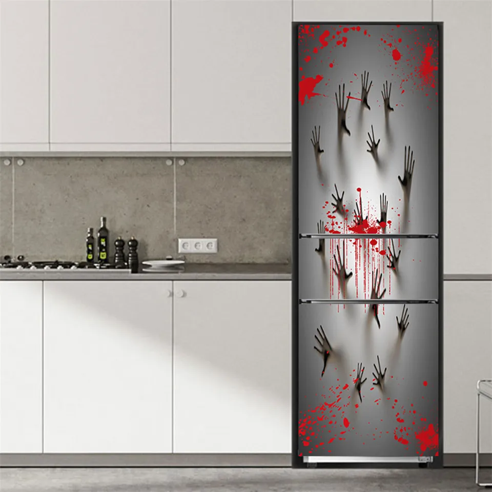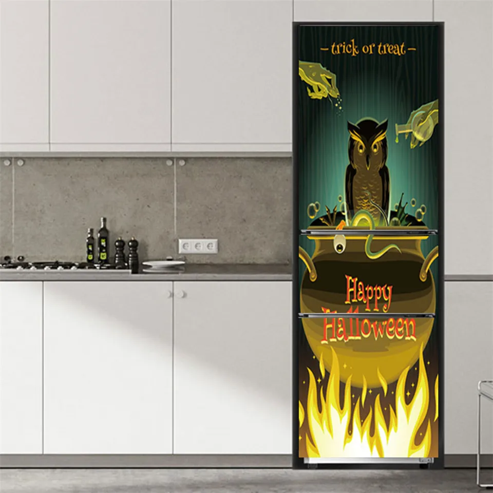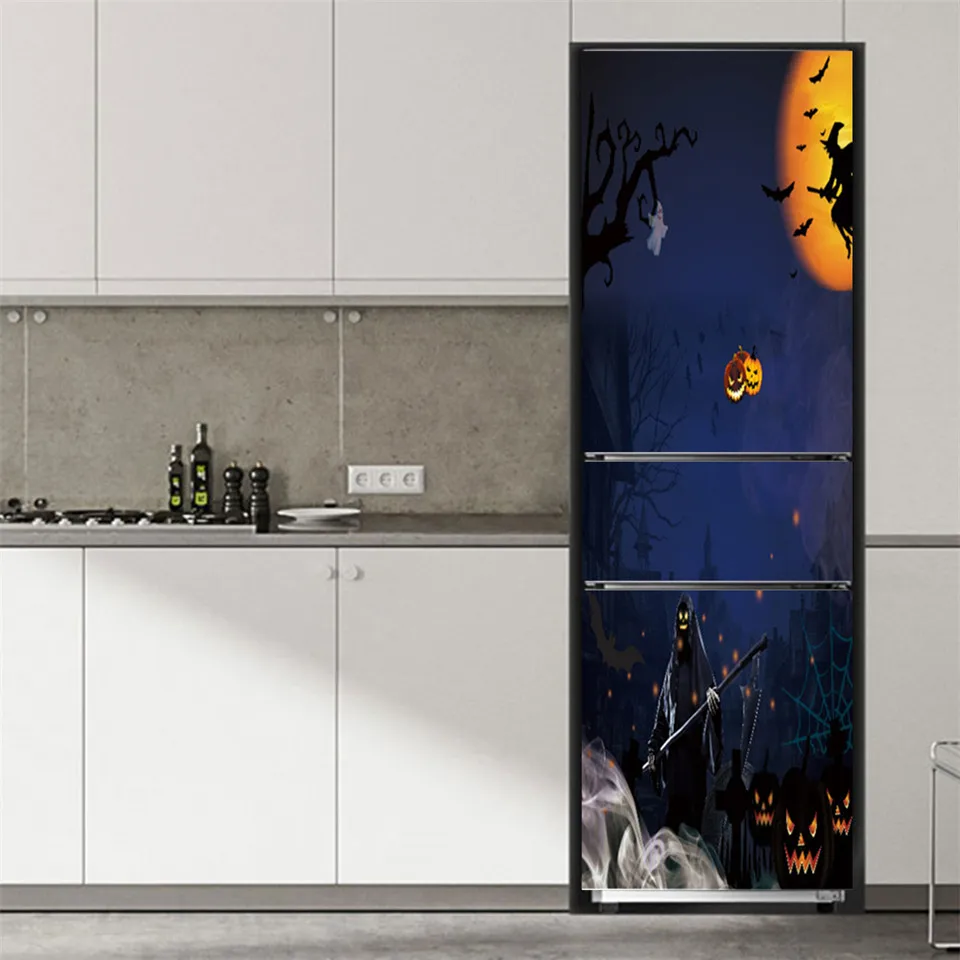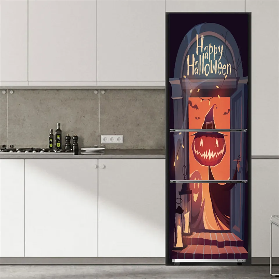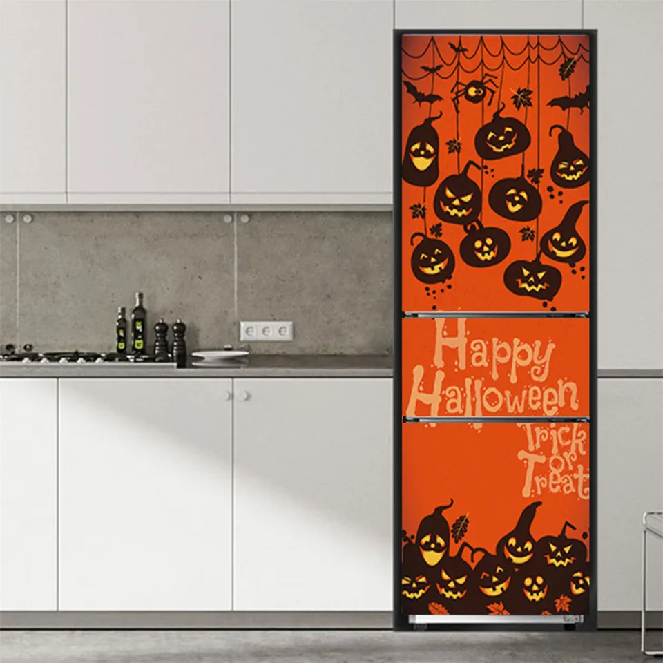 Наклейки на холодильник серии Хэллоуин 60x150 см, самоклеящиеся водостойкие обои для украшения кухни, Настенная Наклейка на дверь шкафа, домашний декор