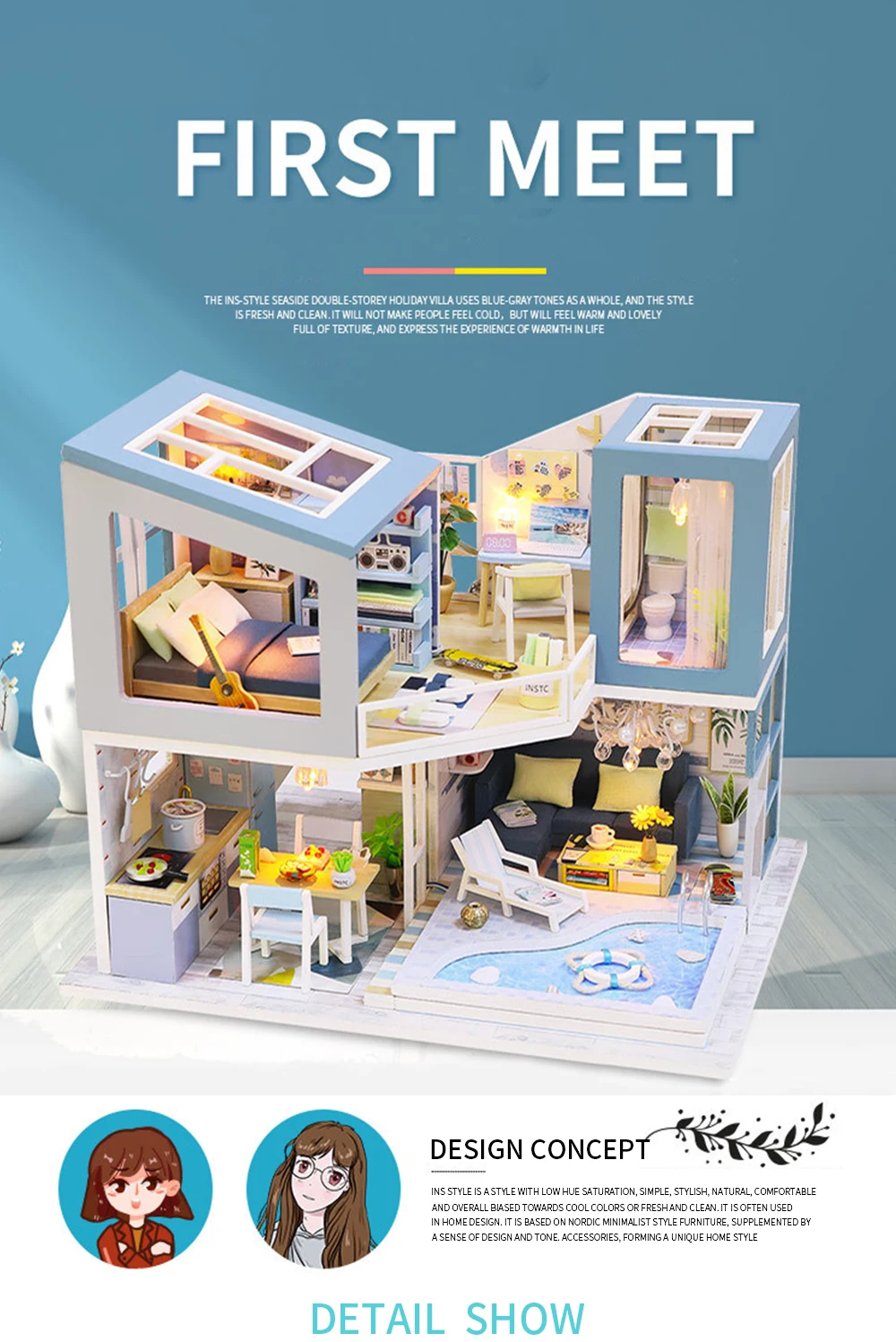 Сделай Сам миниатюрный кукольный домик 3D деревянная модель здания