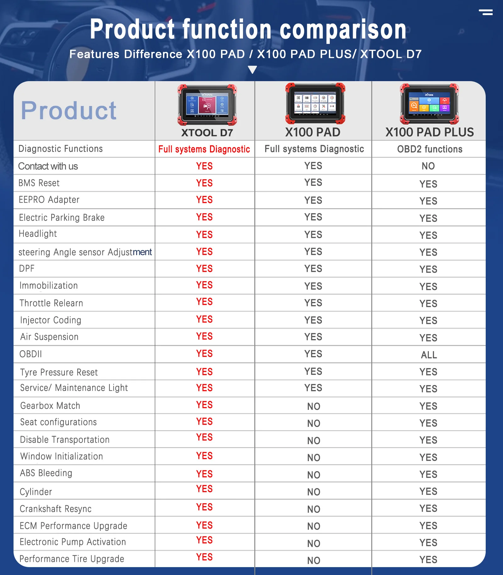 Полная система + 24 сервиса сброса, XTOOL D7 может почти решить проблему вашего автомобиля!
