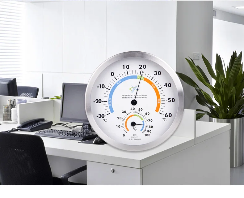 Параметры: 1. Размер: 200 мм (диаметр) x 40 мм (толщина) 2. Материал: нержавеющая сталь и ABS 3. Диапазон температур:-30 ℃ ~ 60 ℃ Погрешность измерения:<± 1 ℃ ~ ± 2 ℃ 4. Диапазон влажности: 0% ~ 100% Погрешность измерения:<± 5% ~ ± 7% 5. Батарея не требуется, механическое автоматическое определение