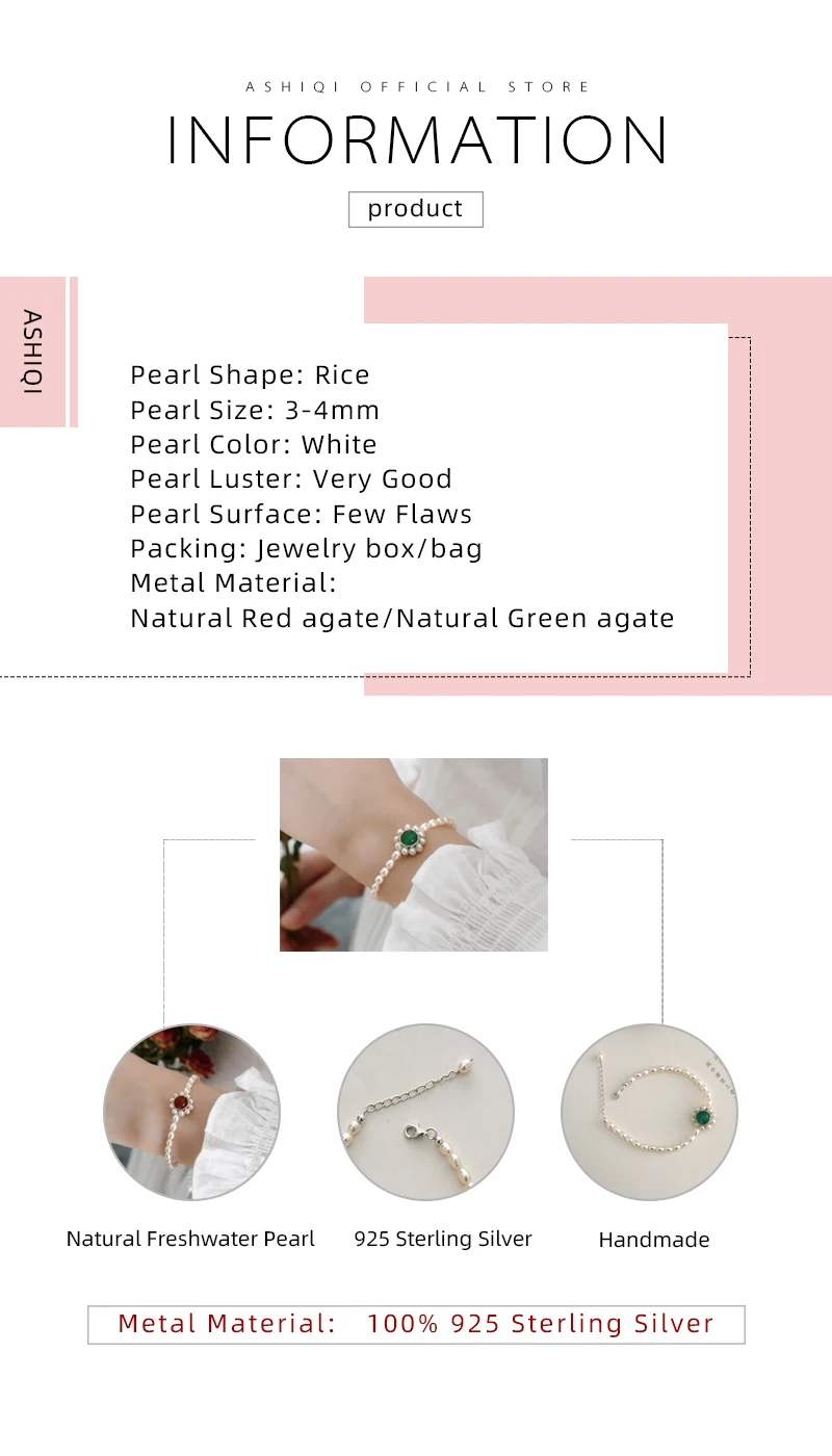 Бренд: ASHIQI Тип камня: натуральный пресноводный жемчуг Жемчуг Форма: риса Жемчуг Цвет: белый Жемчужный Блеск: очень хорошо Жемчужная Поверхность: несколько недостатков Размер жемчуга: 3-4 мм Материал металла: 100% 925 пробы серебро/натуральный красный агат/натуральный зеленый агат Длина: 16 см/18 см (добавить 3 см удлинительную цепочку) Упаковка: коробка для ювелирных изделий/Сумка