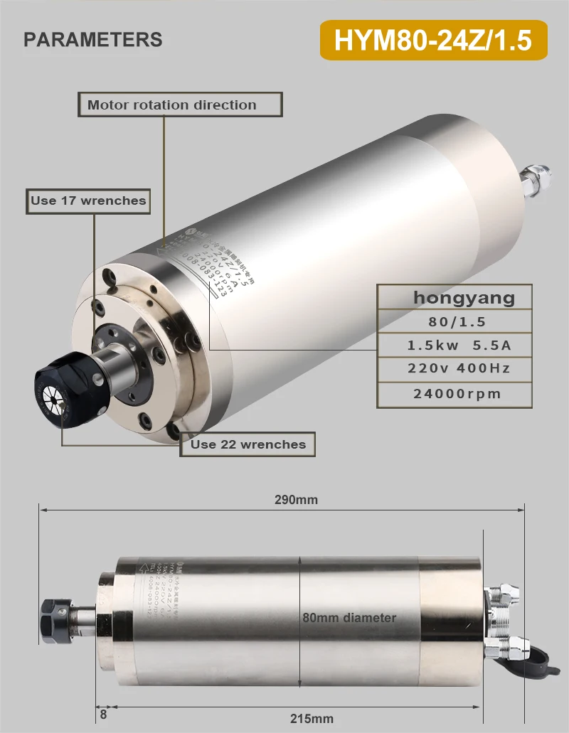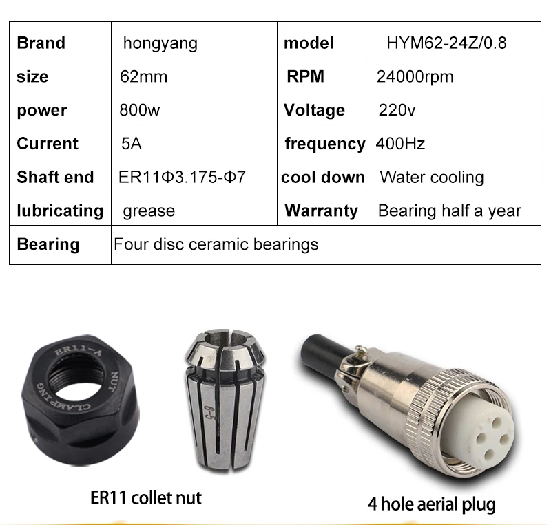 When a new electric spindle is received, it starts to run at a low speed of 6000, and increases by 3000 every ten minutes, until after 24000 revolutions, it can be used normally. The bearings in the new spindle need to be preheated and run in, so remember! In addition, in order to prolong the service life of the spindle, it is best to start the spindle for a test run for 10-15 minutes during normal use.