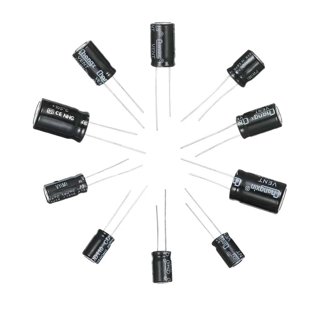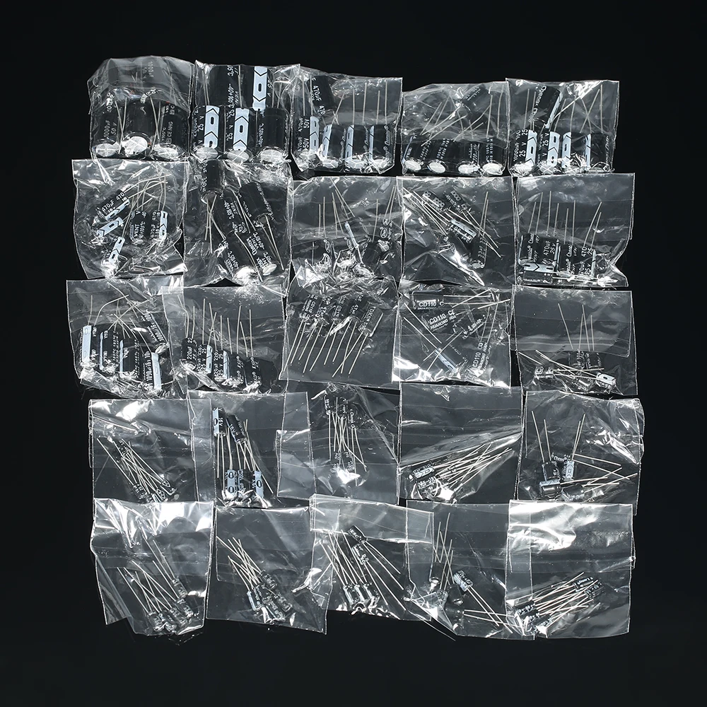 Напряжение 25 в: 5*10 мкФ, 5*47 мкФ, 5*100 мкФ, 5*220 мкФ, 5*330 мкФ, 5*470 мкФ, 5*1000 мкФ, 5*2200 мкФ