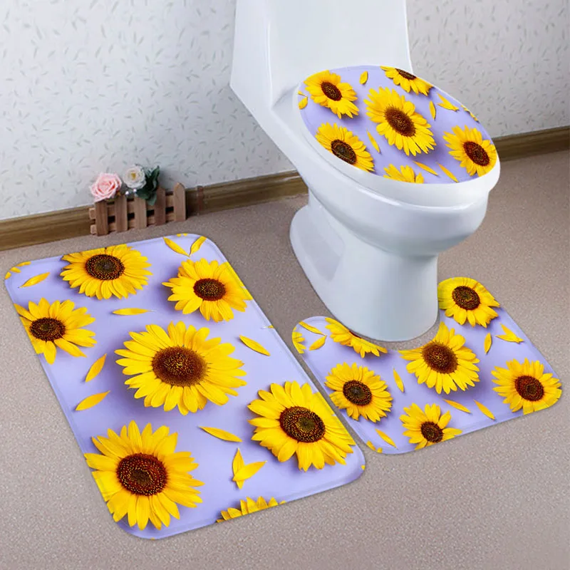2020 новейший принт подсолнечника для ванной комнаты, набор ковриков для ванной или занавесок для ванной комнаты